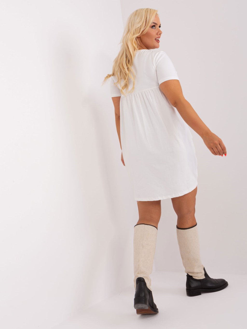 Modelka je oblečena do velikosti one size.