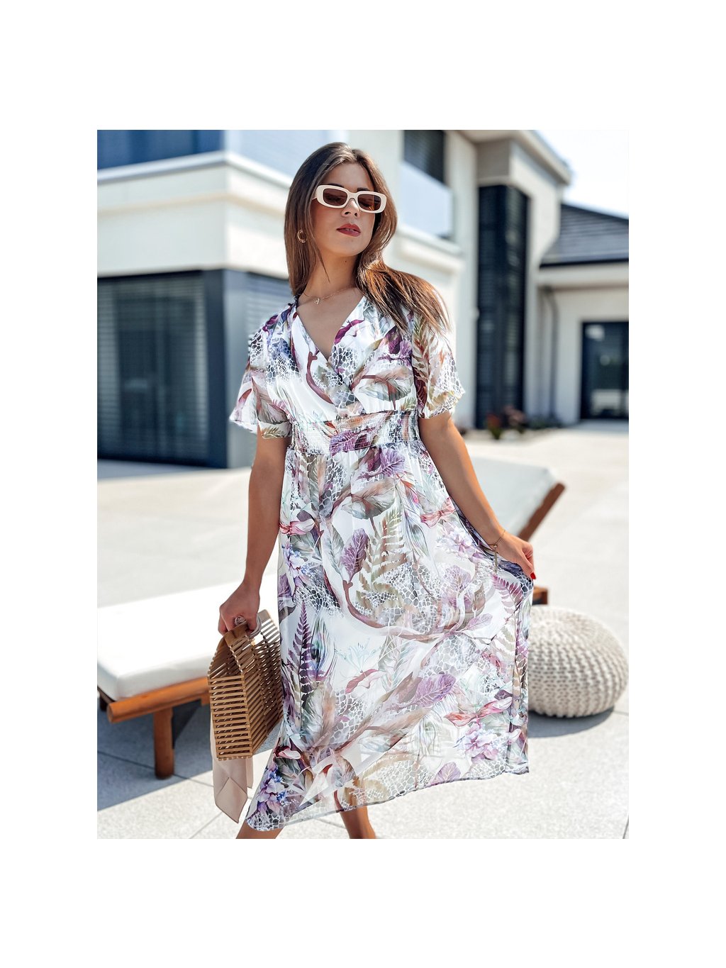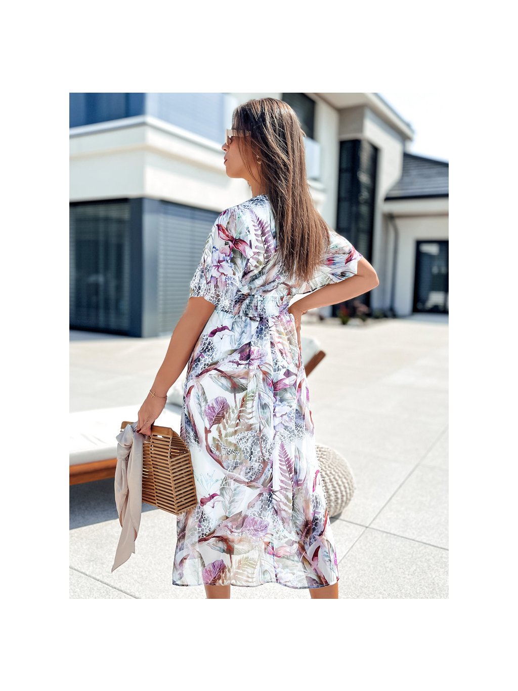 BÍLÉ MIDI ŠATY S BAREVNÝM VZOREM ARABELLA