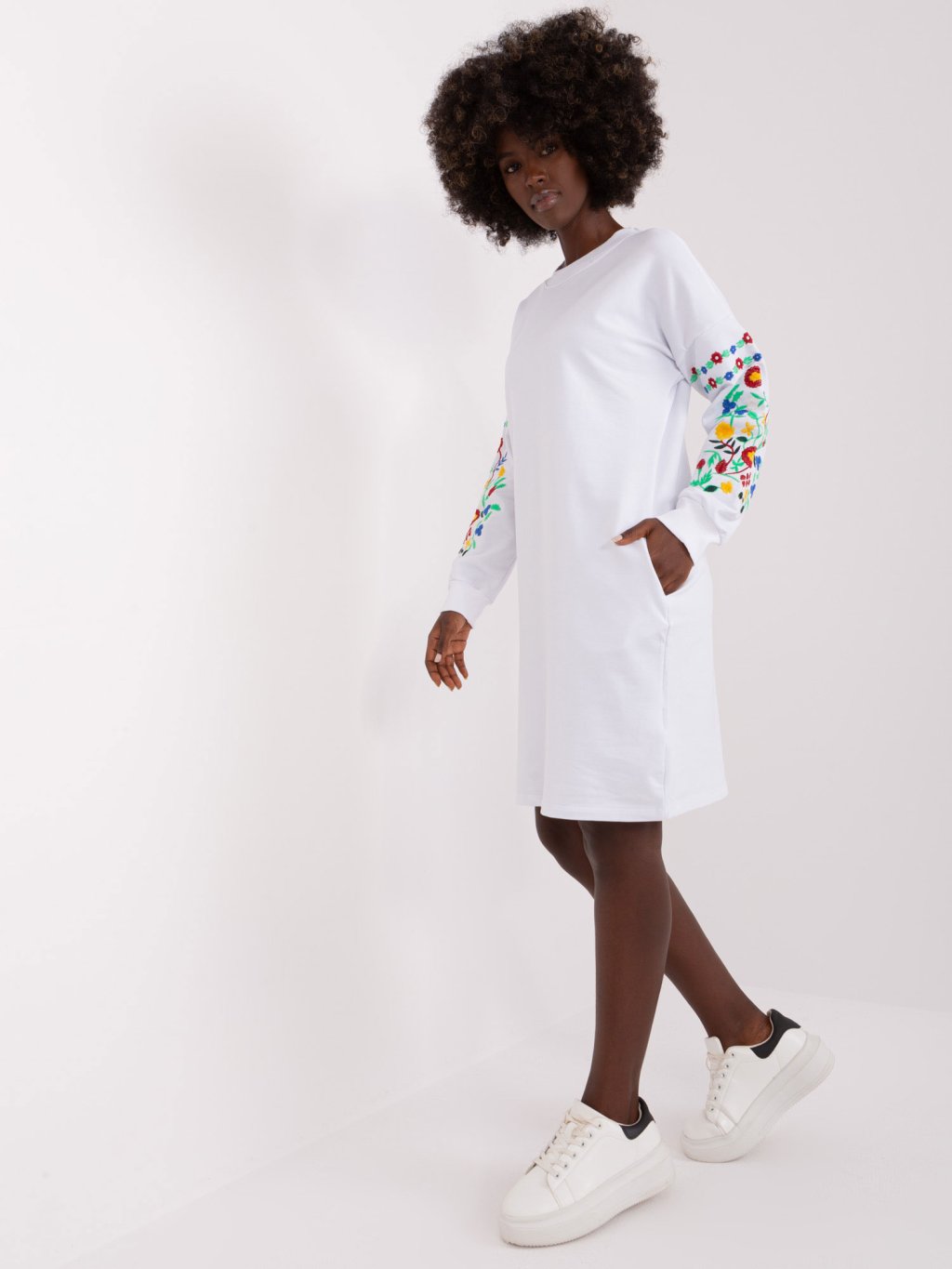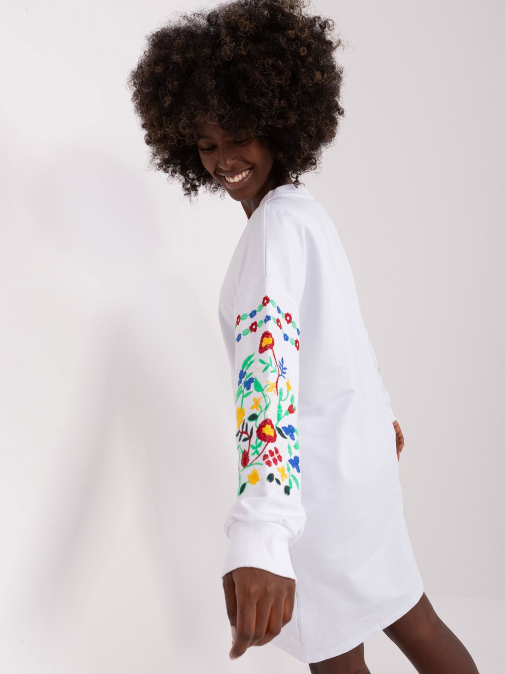 BÍLÉ MIKINOVÉ ŠATY S VYŠÍVÁNÍM