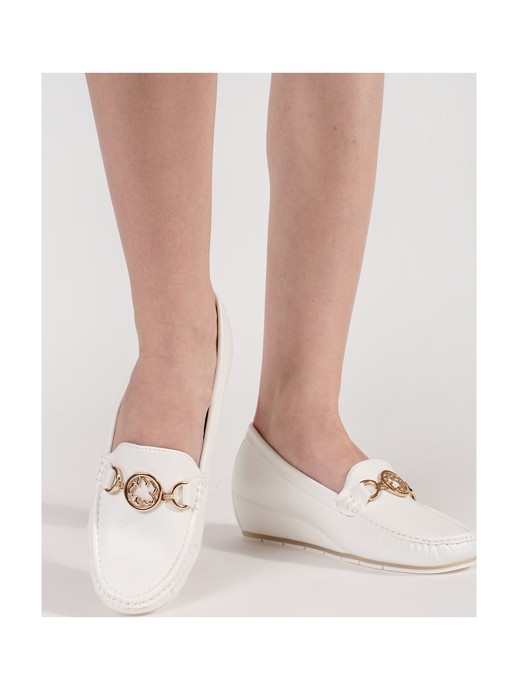 BÍLÉ MOKASÍNY NA KLÍNKU SE ZLATÝM ZDOBENÍM, PODPATEK 2 CM