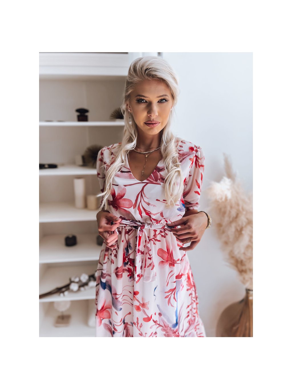 BÍLÉ ŠATY S RŮŽOVÝM KVĚTINOVÝM VZOREM SELIA
