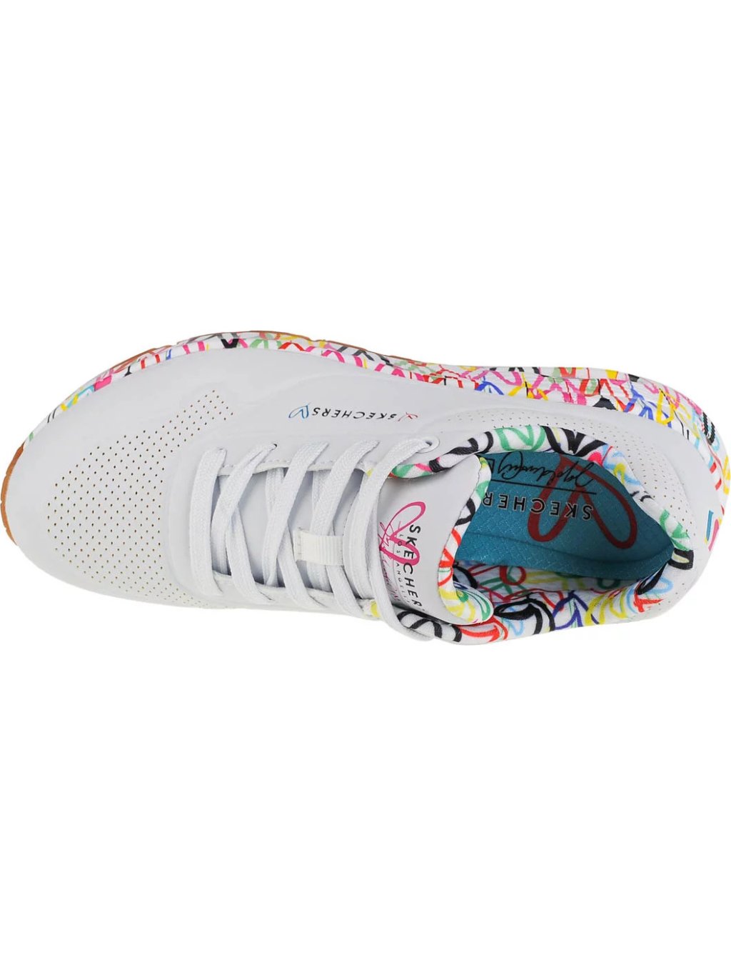BÍLÉ TENISKY S BAREVNOU PLATFORMOU SKECHERS UNO-LOVING LOVE