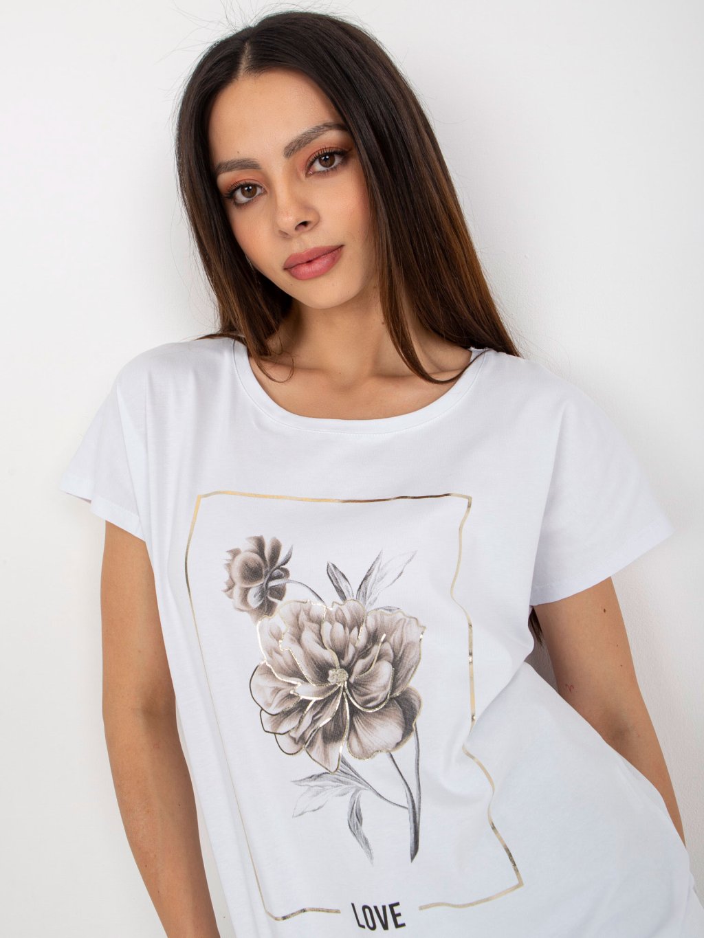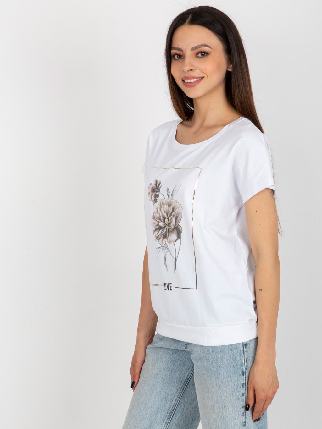 BÍLÉ TRIČKO S POTISKEM KVĚTINY