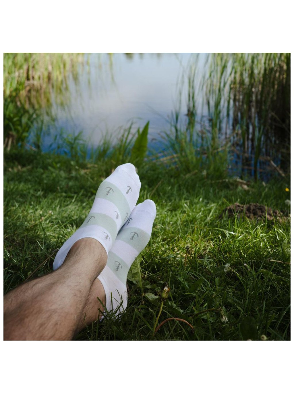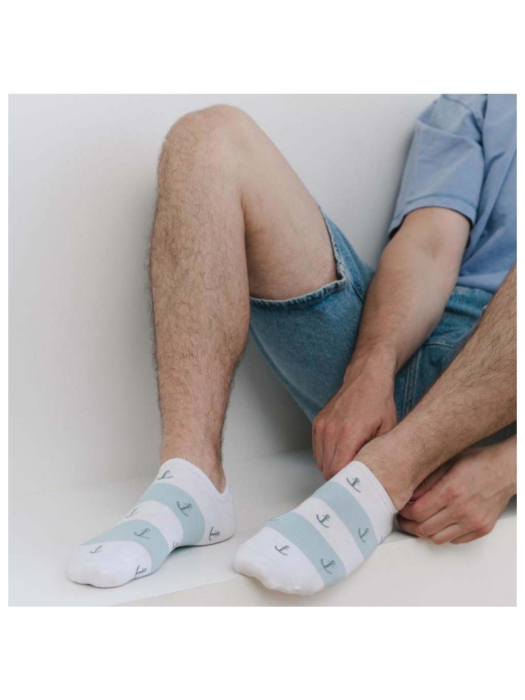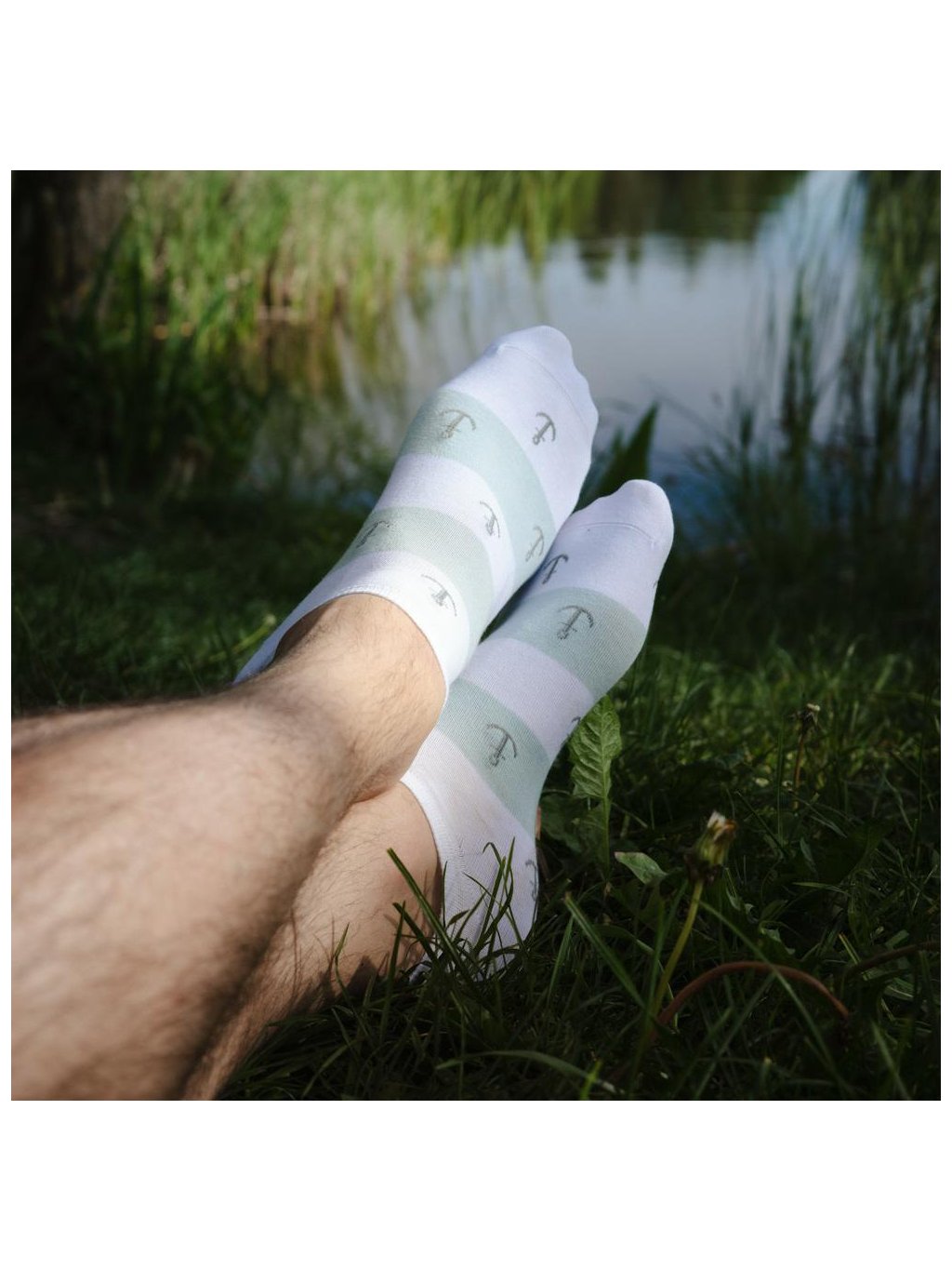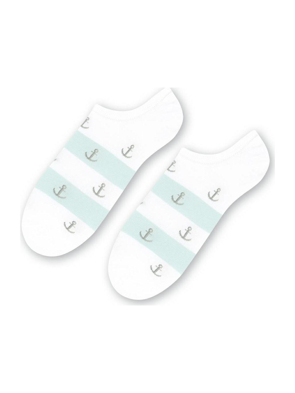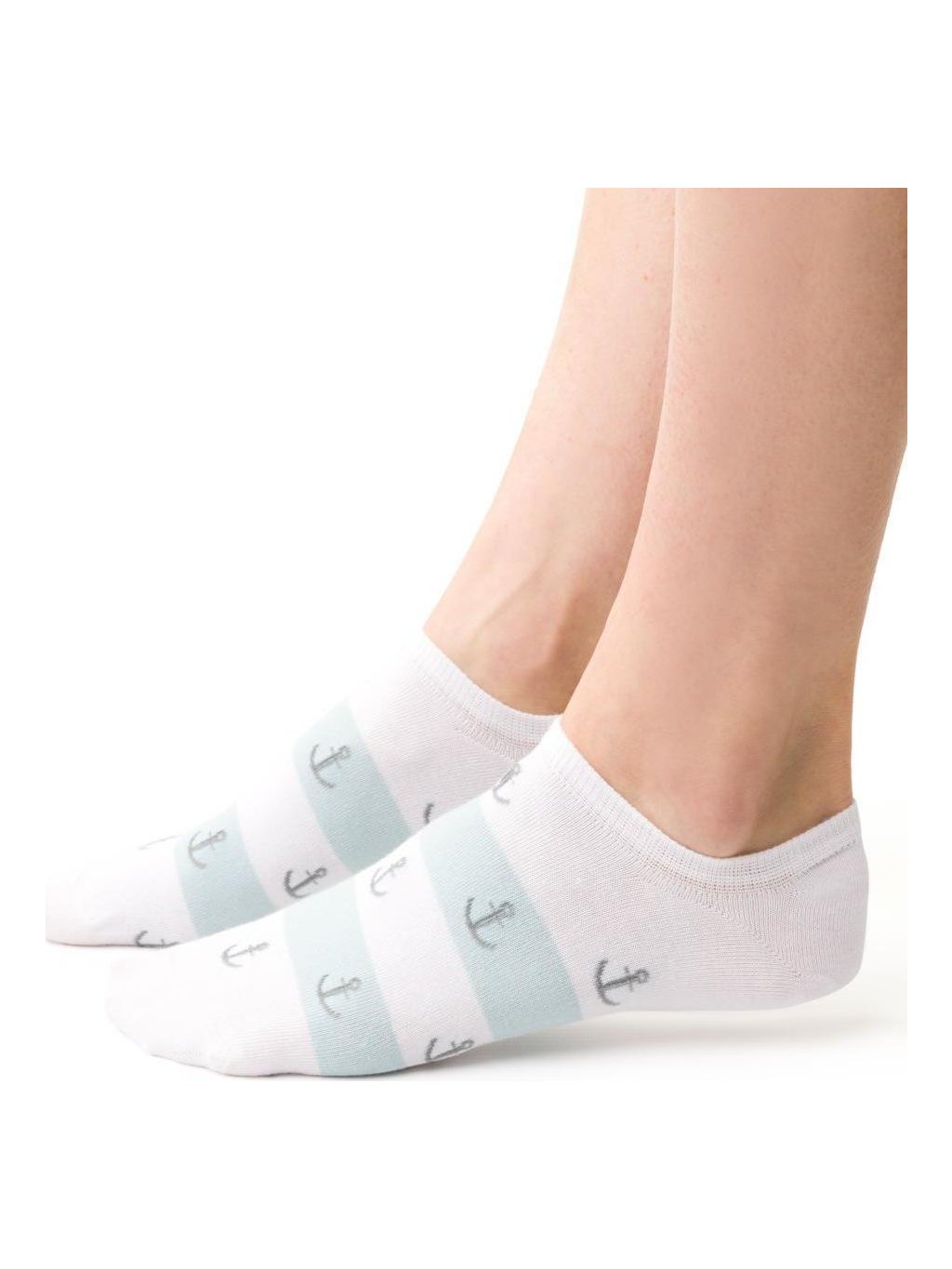 BÍLÉ UNISEX KOTNÍKOVÉ PONOŽKY S PRUHY A KOTVIČKAMI ART.117