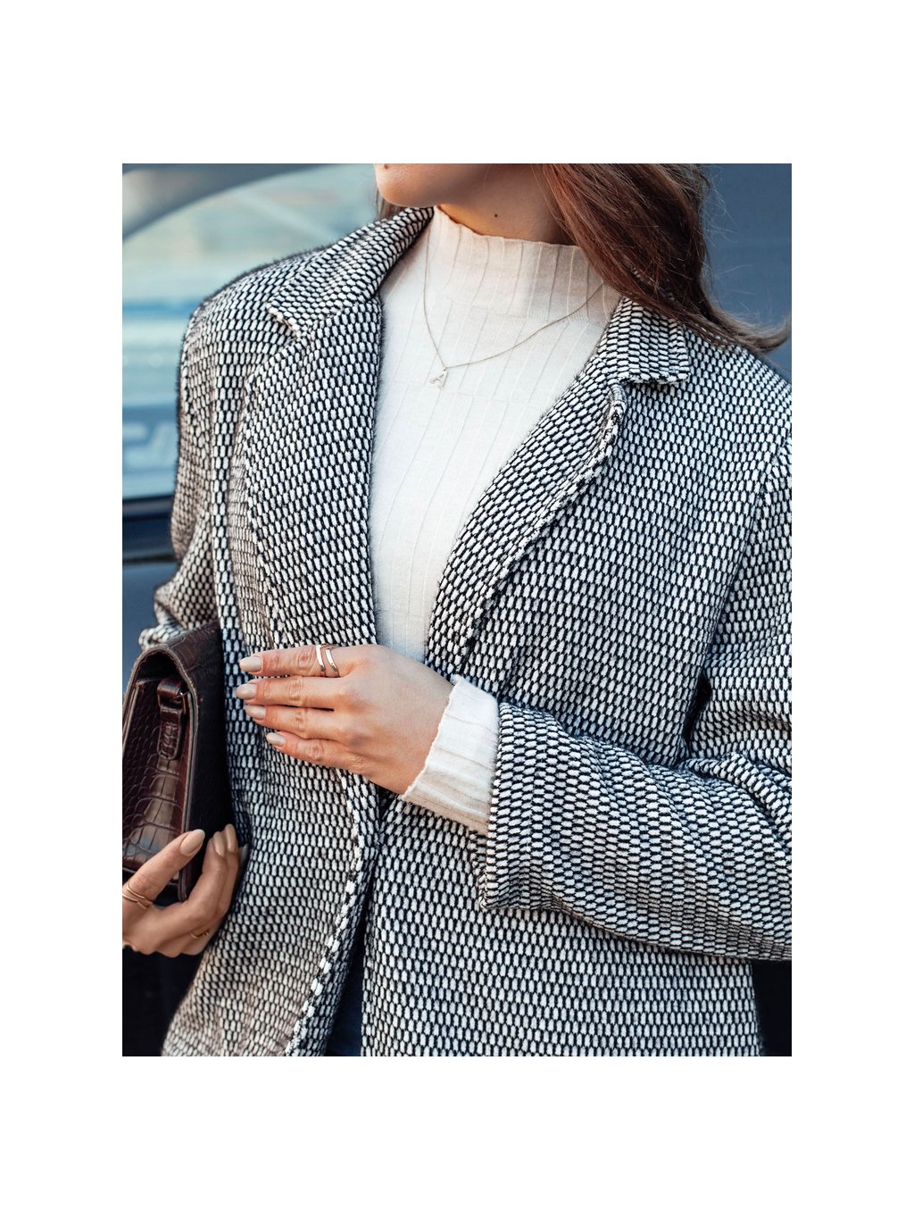 BÍLO-ČERNÝ DÁMSKÝ OVERSIZE KABÁT TEDDSTYLE