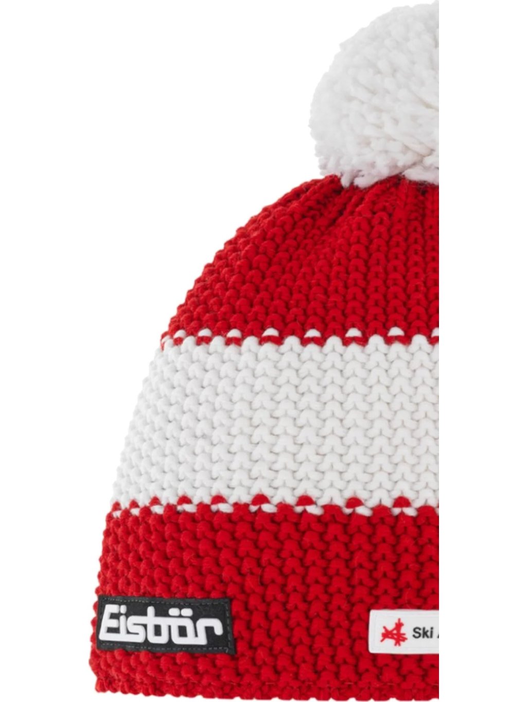 BÍLO-ČERVENÁ VLNĚNÁ ČEPICE EISBAR STAR POMPON MU SKA