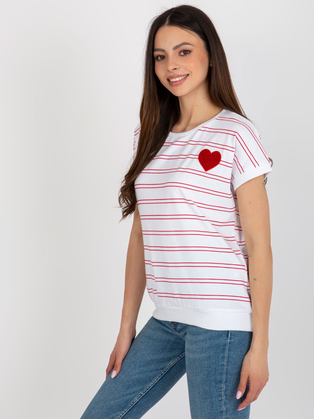 BÍLO-ČERVENÉ PRUHOVANÉ TRIČKO SE SRDÍČKEM