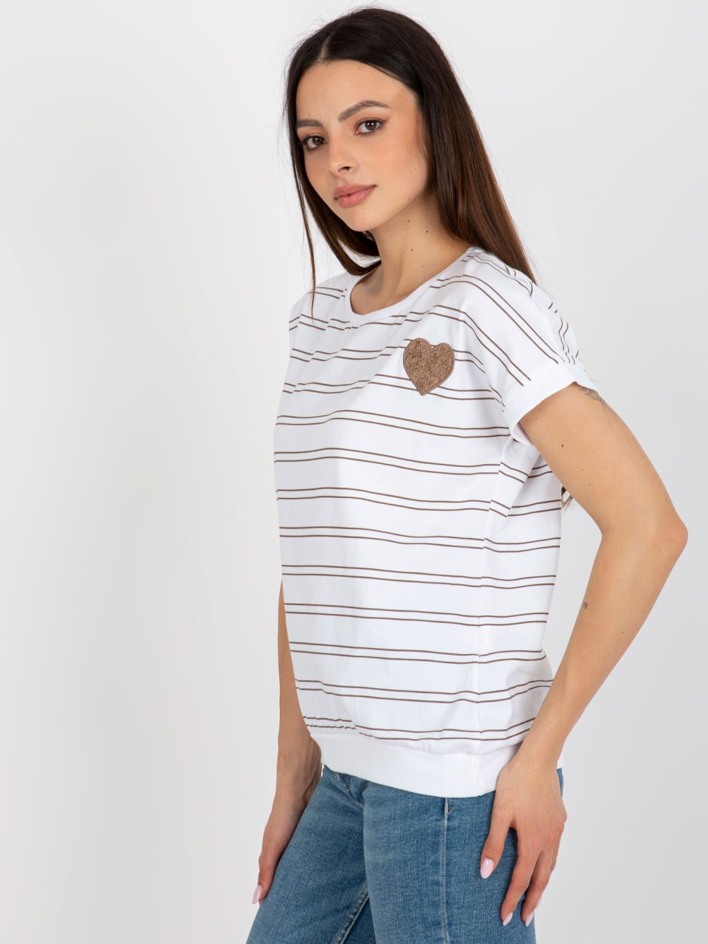 BÍLO-HNĚDÉ PRUHOVANÉ TRIČKO SE SRDÍČKEM