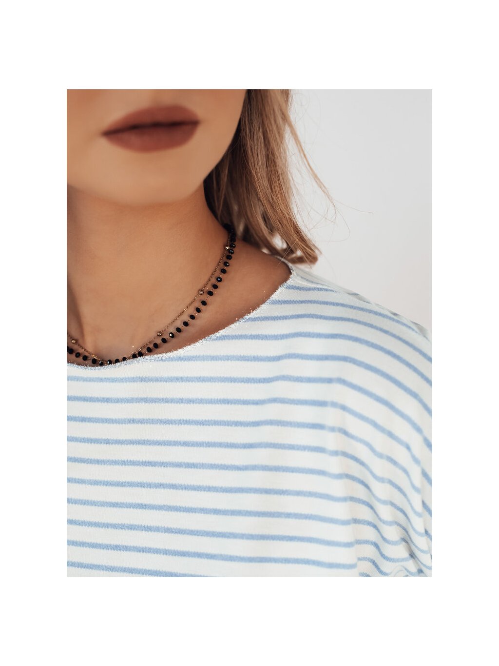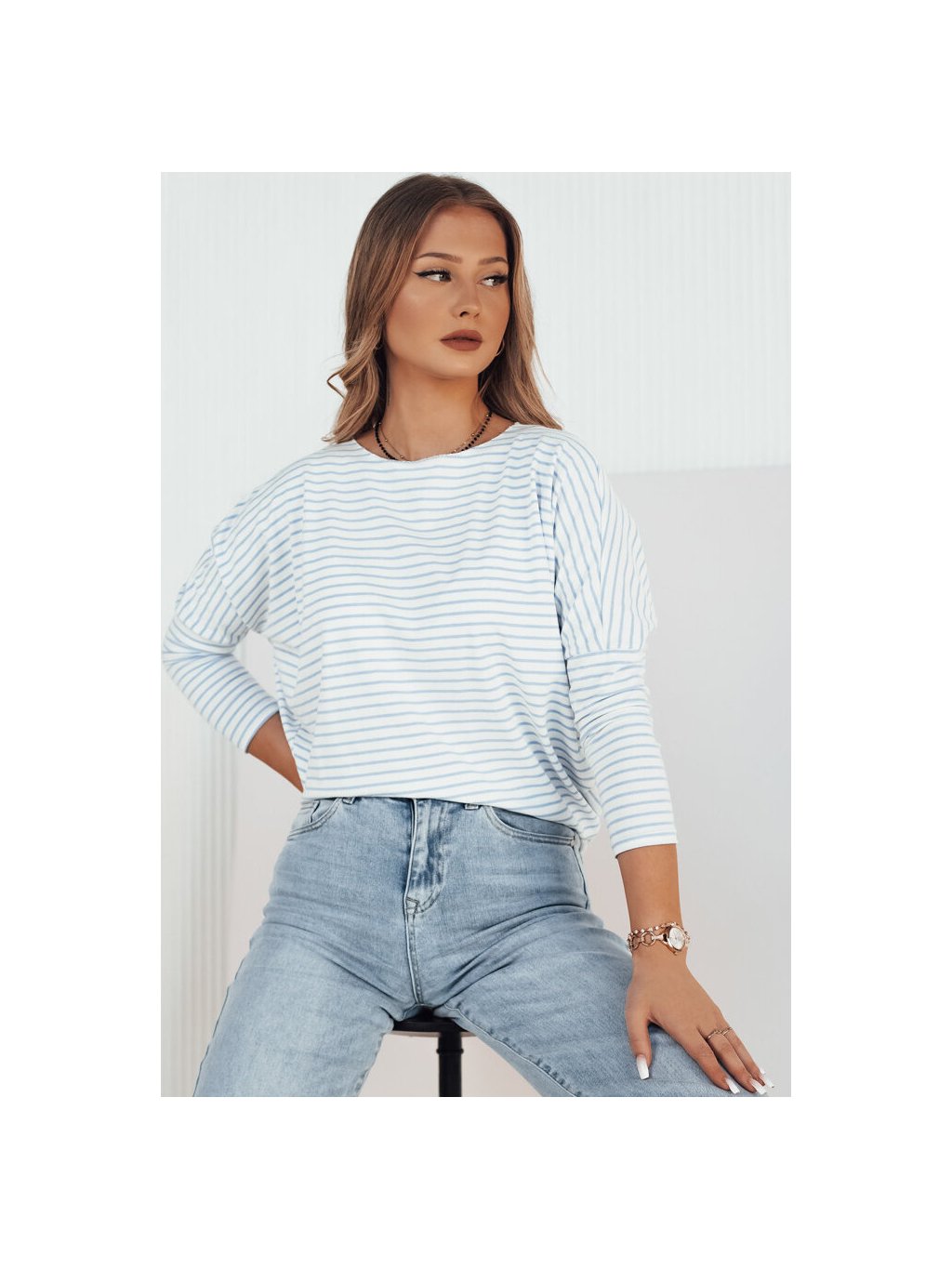 BÍLO-MODRÉ PRUHOVANÉ TRIČKO S DLOUHÝM RUKÁVEM APRICALE