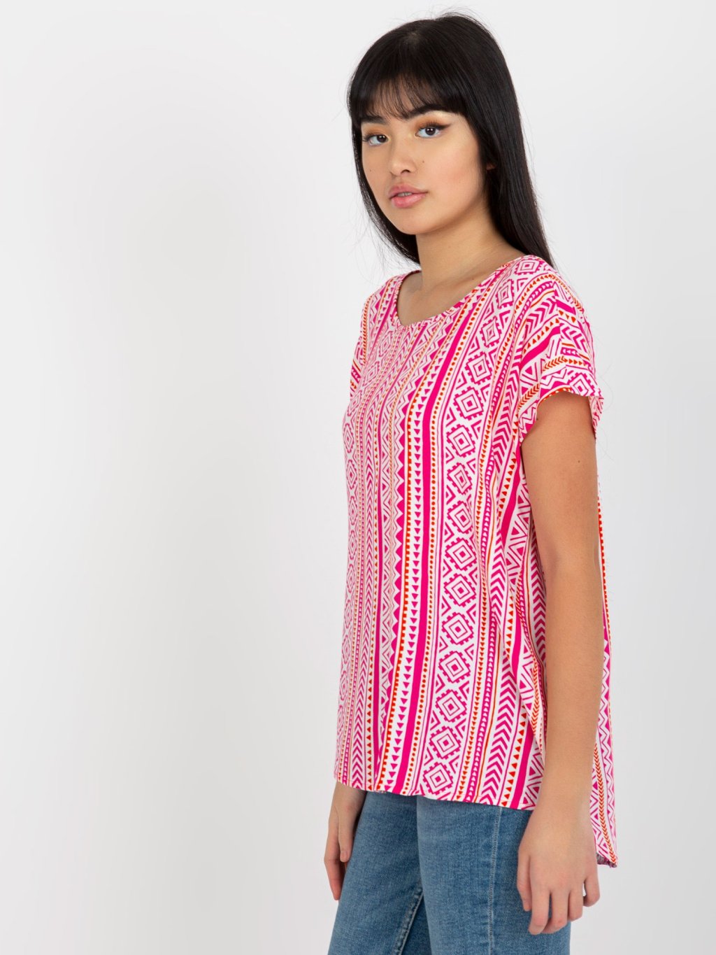 BÍLO-RŮŽOVÉ TRIČKO SE VZOREM