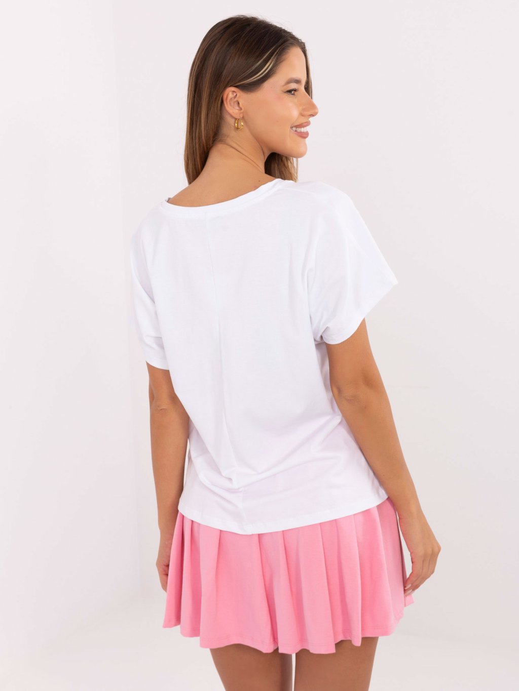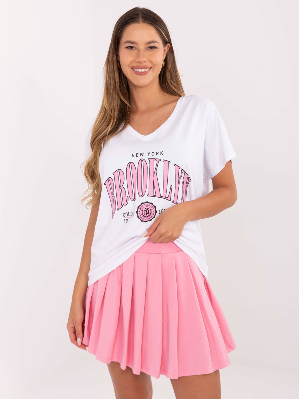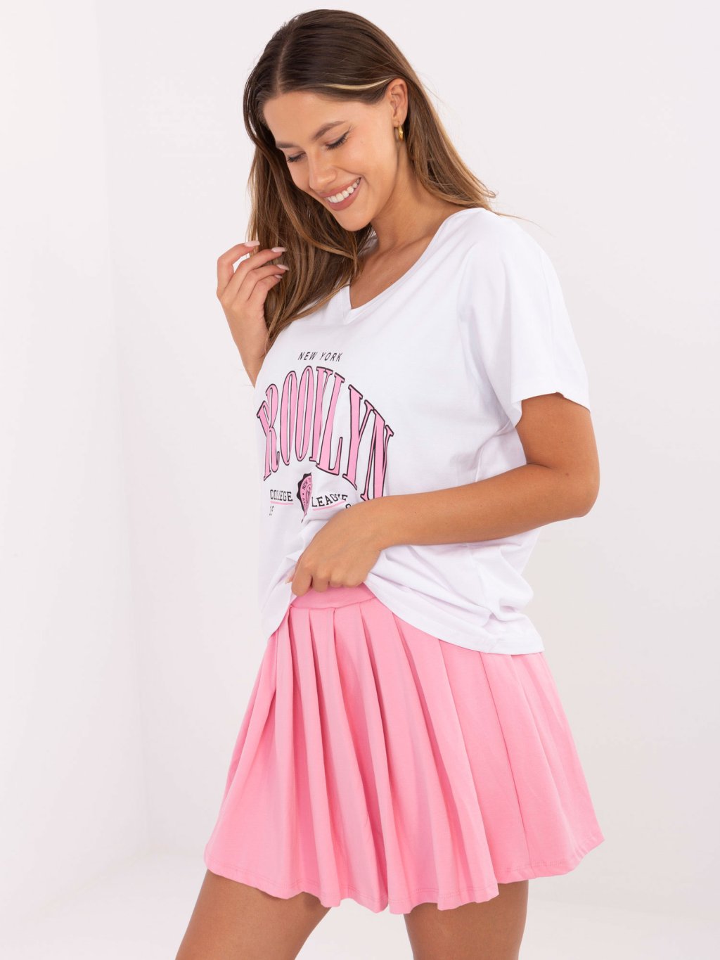BÍLO-RŮŽOVÝ DÁMSKÝ SET TRIČKA A PLISOVANÉ SUKNĚ SE VŠITÝMI ŠORTKAMI