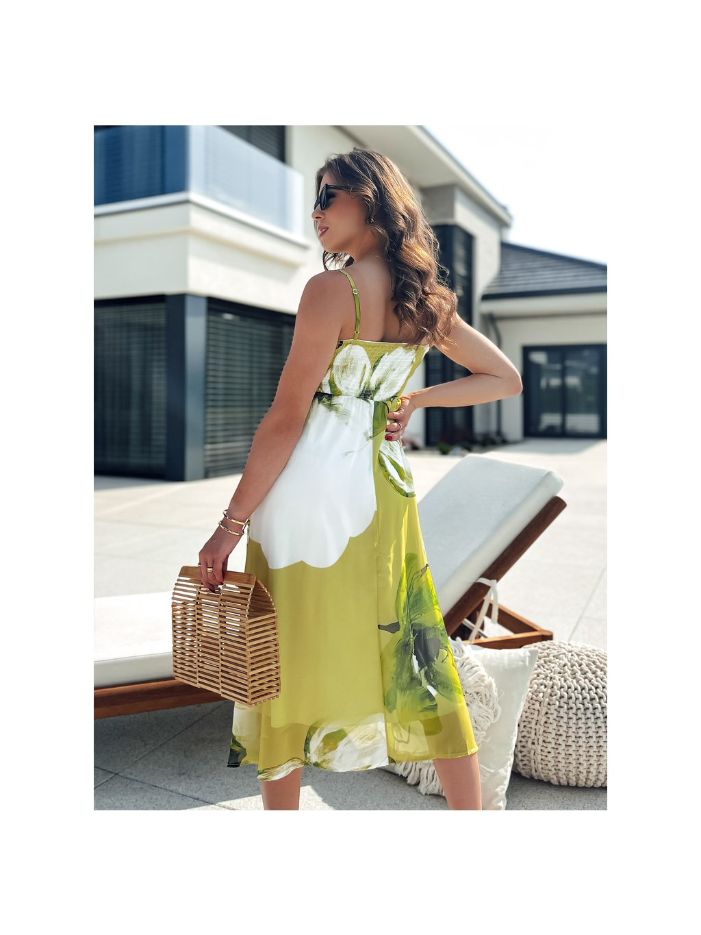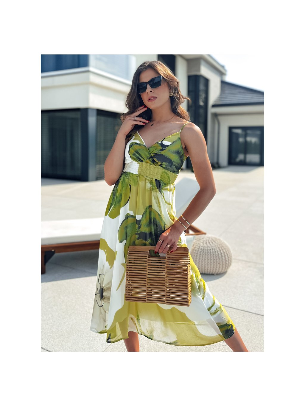 BÍLO-ZELENÉ KVĚTINOVÉ MIDI ŠATY SERENA