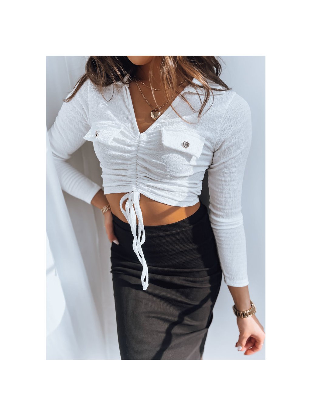 BÍLÝ CROP TOP SE STAŽENÍM RITAL