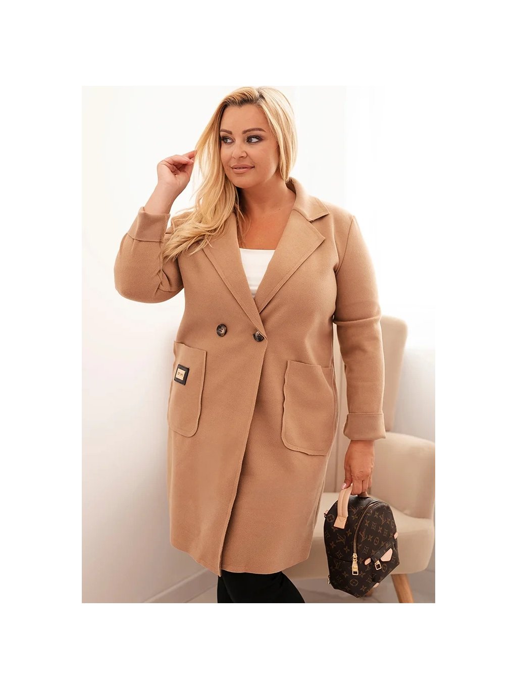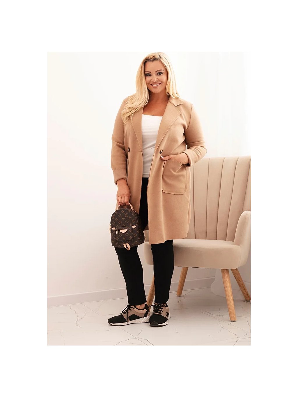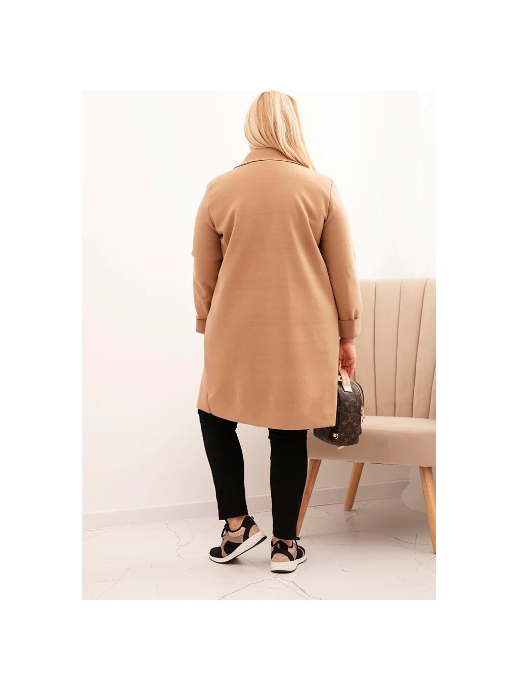CAMEL DÁMSKÝ ELEGANTNÍ PLUS SIZE KABÁT S LÍMCEM A VELKÝMI KAPSAMI