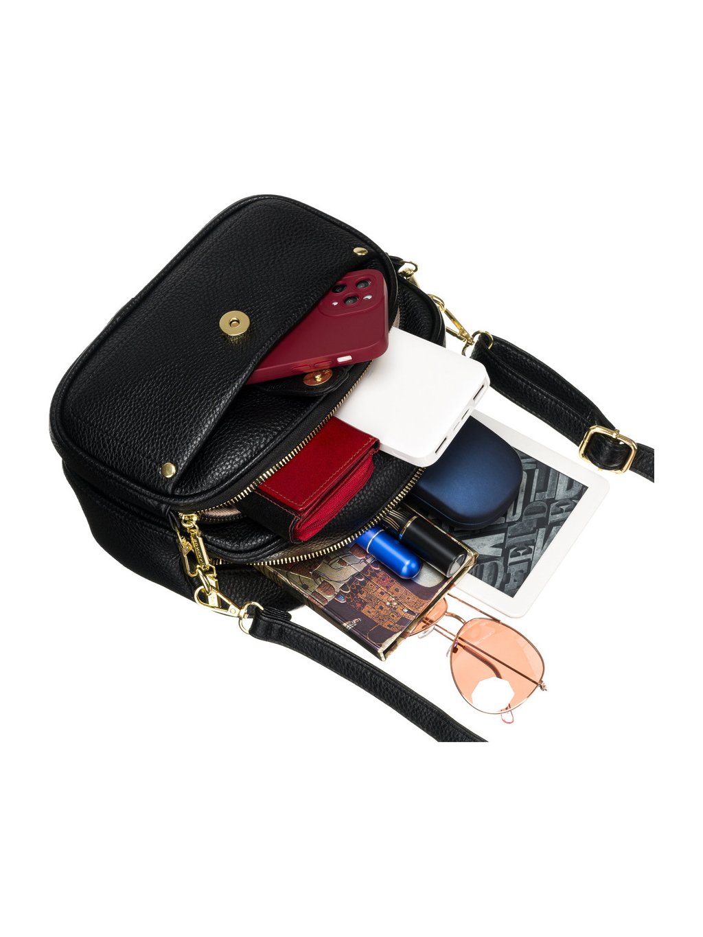 ČERNÁ DÁMSKÁ CROSSBODY KABELKA S ODNÍMATELNOU PŘEDNÍ TAŠTIČKOU