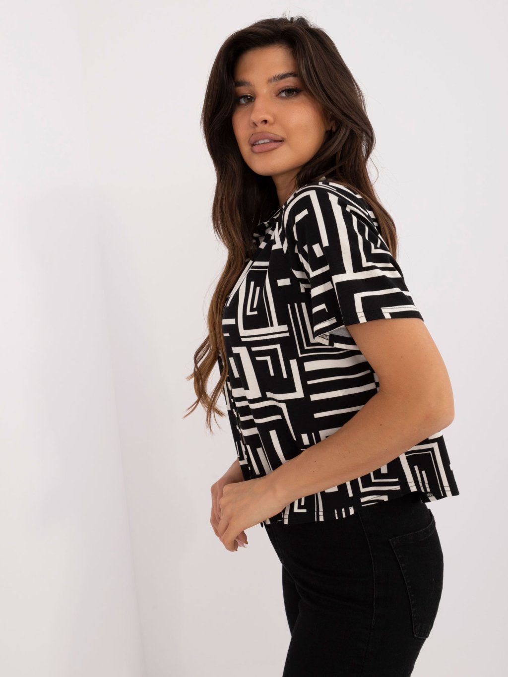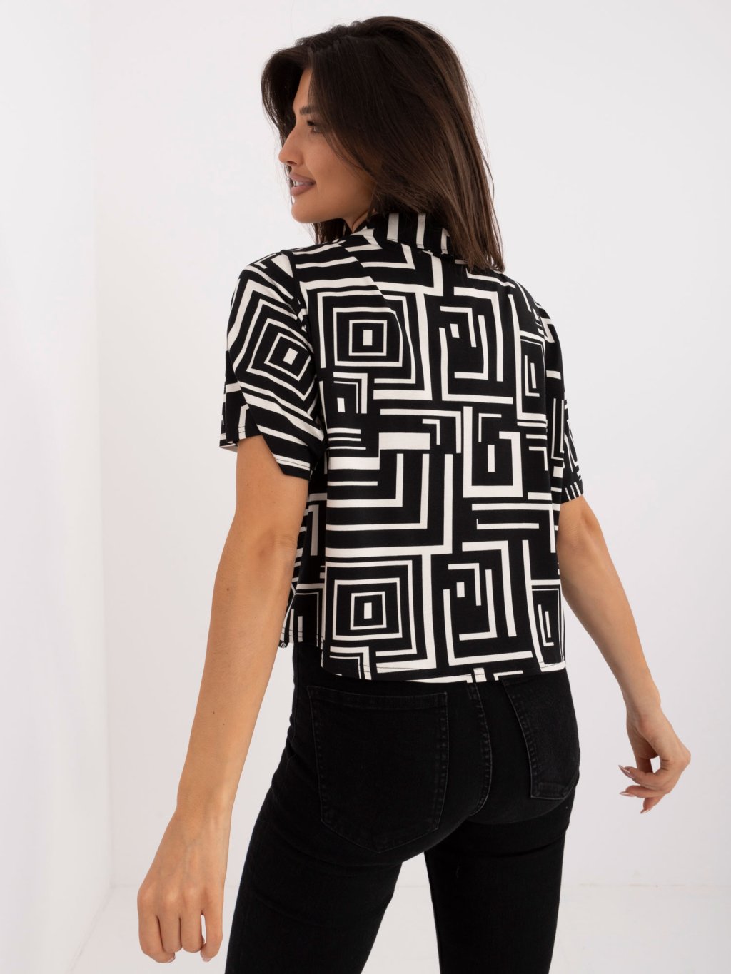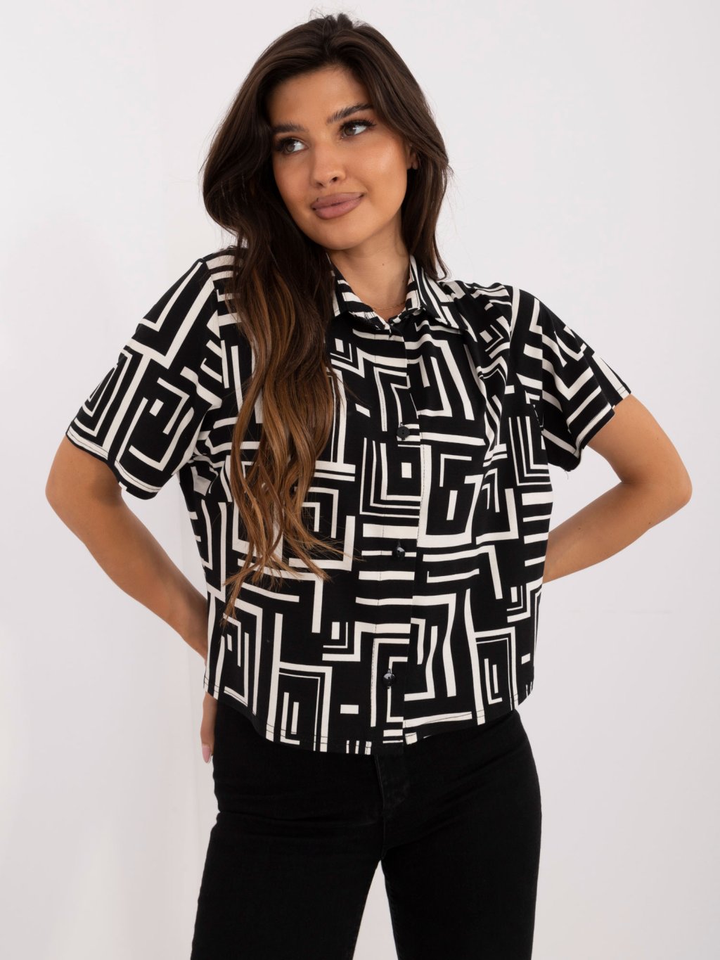 ČERNÁ DÁMSKÁ KOŠILE S KRÁTKÝM RUKÁVEM A GEOMETRICKÝM VZOREM