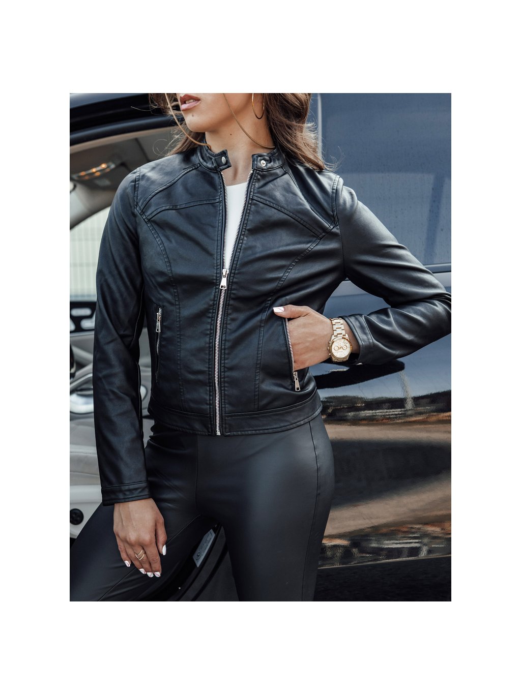 ČERNÁ DÁMSKÁ KOŽENKOVÁ BUNDA TIFANNY