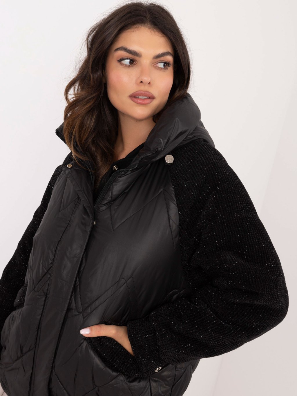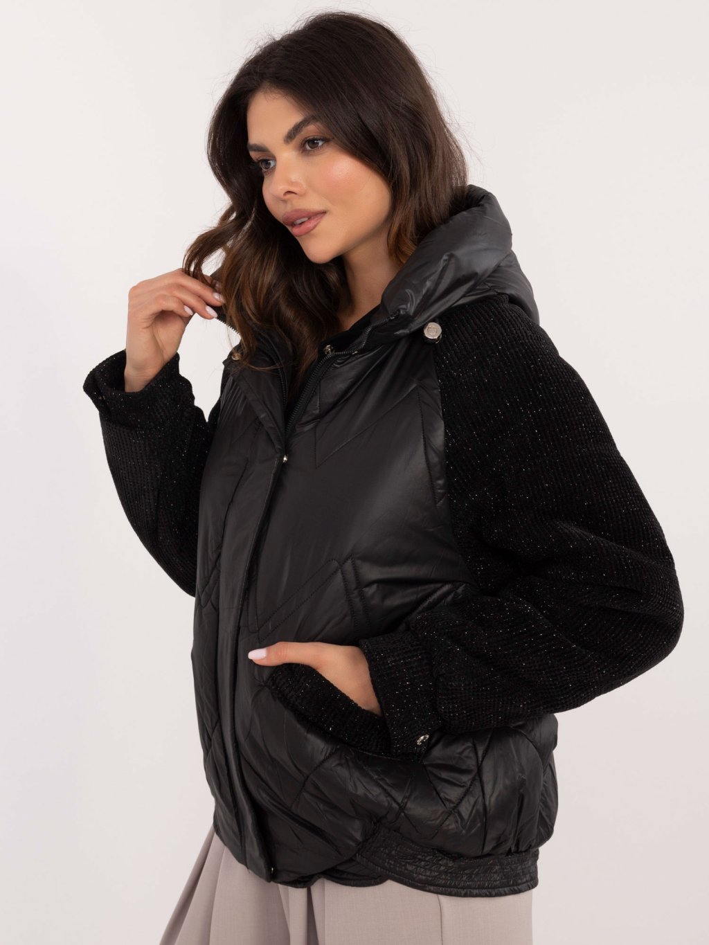ČERNÁ DÁMSKÁ PŘECHODOVÁ BUNDA S LESKLÝMI RUKÁVY