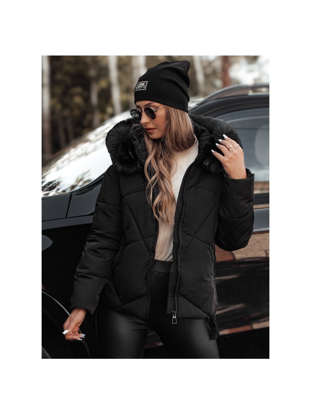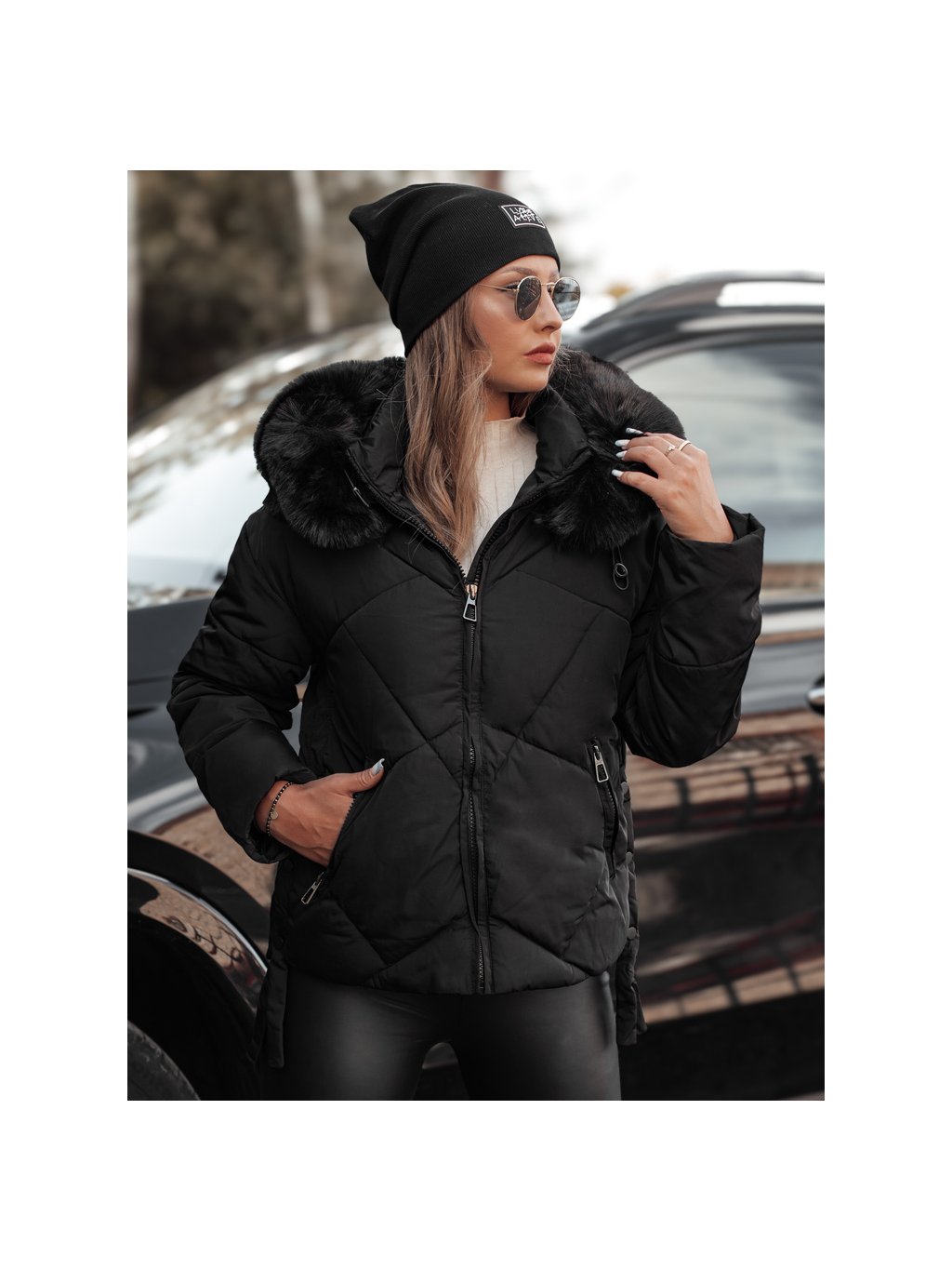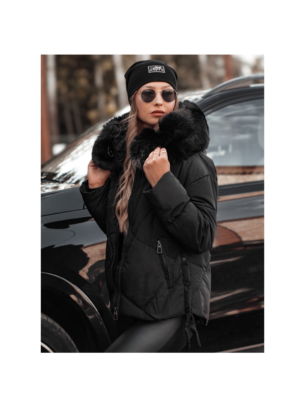 ČERNÁ DÁMSKÁ ZIMNÍ PROŠÍVANÁ BUNDA S KAPUCÍ MODIVA