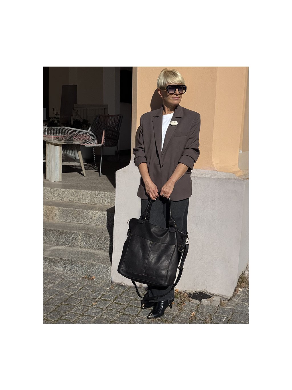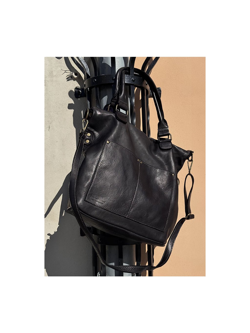Jedinečný ručně šítý a barvený model z dílny MARCO MAZZINI. Zapínání na zip. Uvnitř jsou k dispozici 3 kapsy, z toho jedna na zip. Praktický model, do kterého vejde formát A4. Součástí kabelky je nastavitelný popruh.