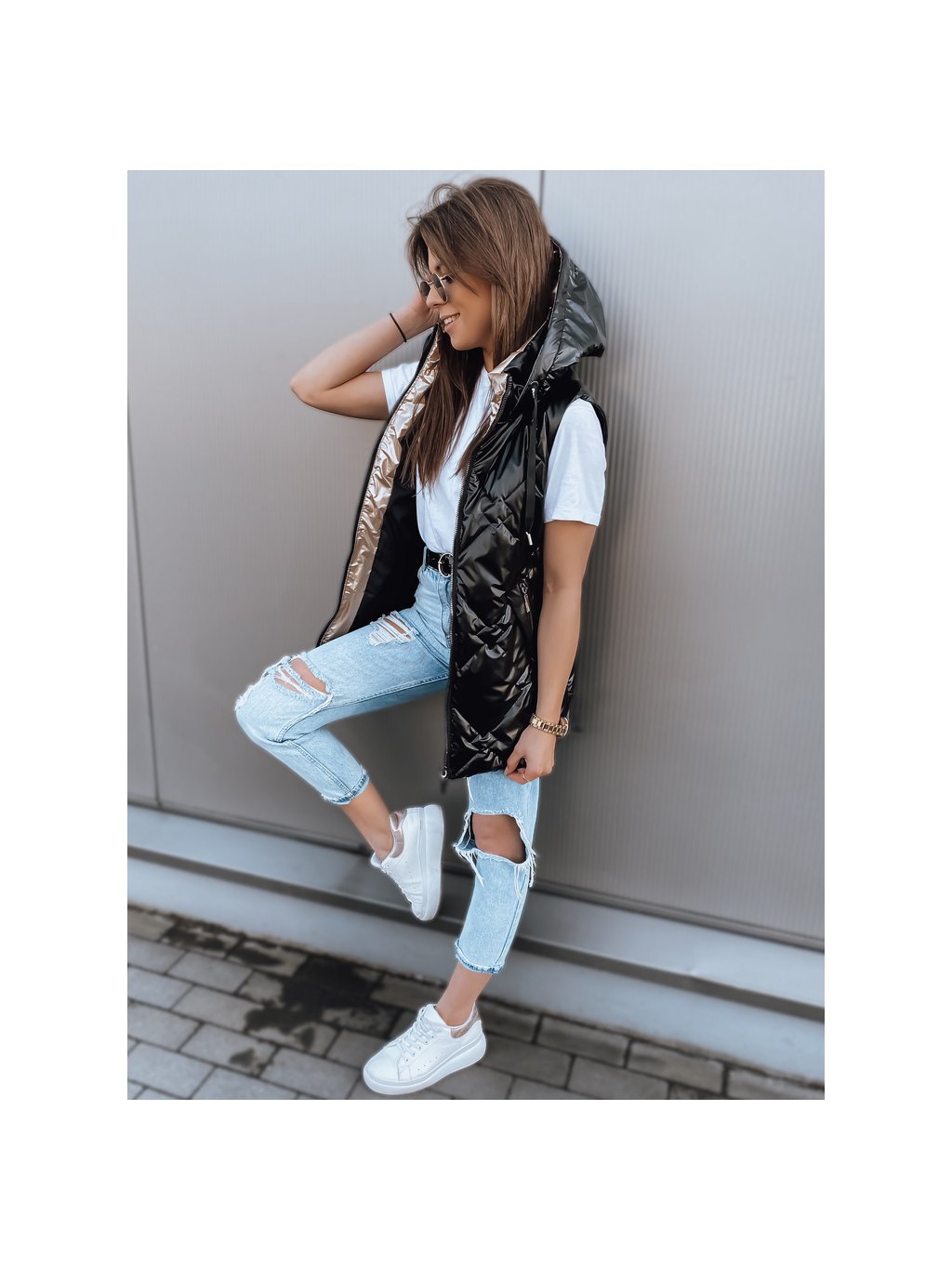 ČERNÁ LESKLÁ PROŠÍVANÁ VESTA PAVON