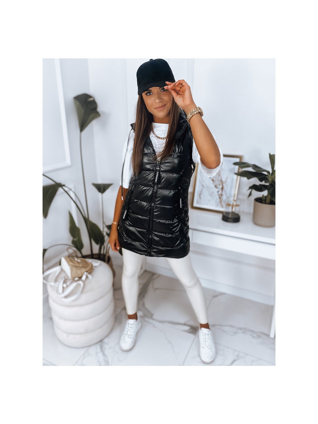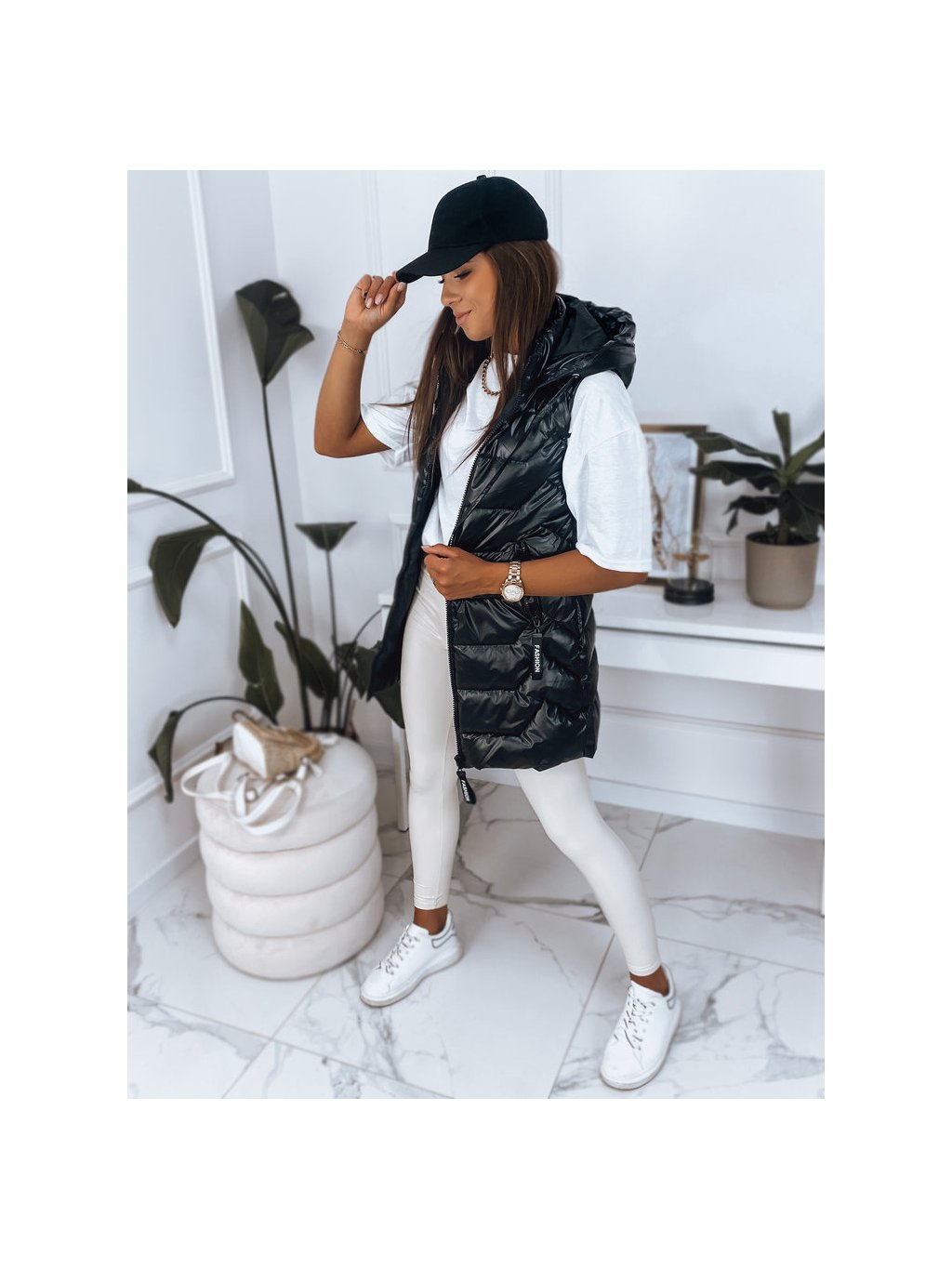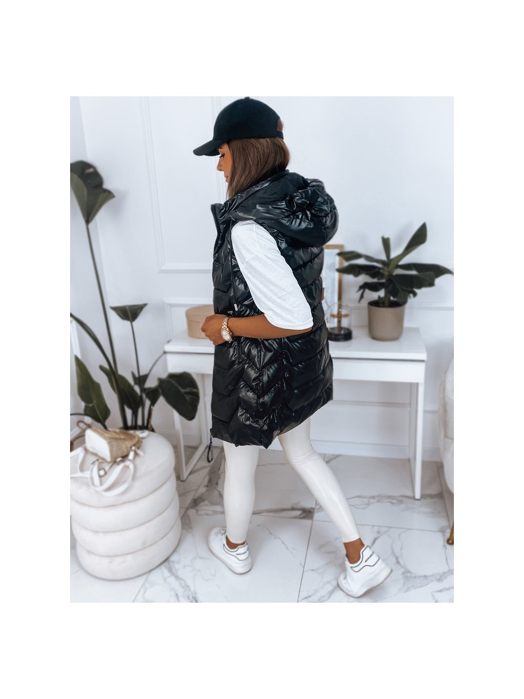 ČERNÁ LESKLÁ VESTA S KAPUCÍ KENDRA
