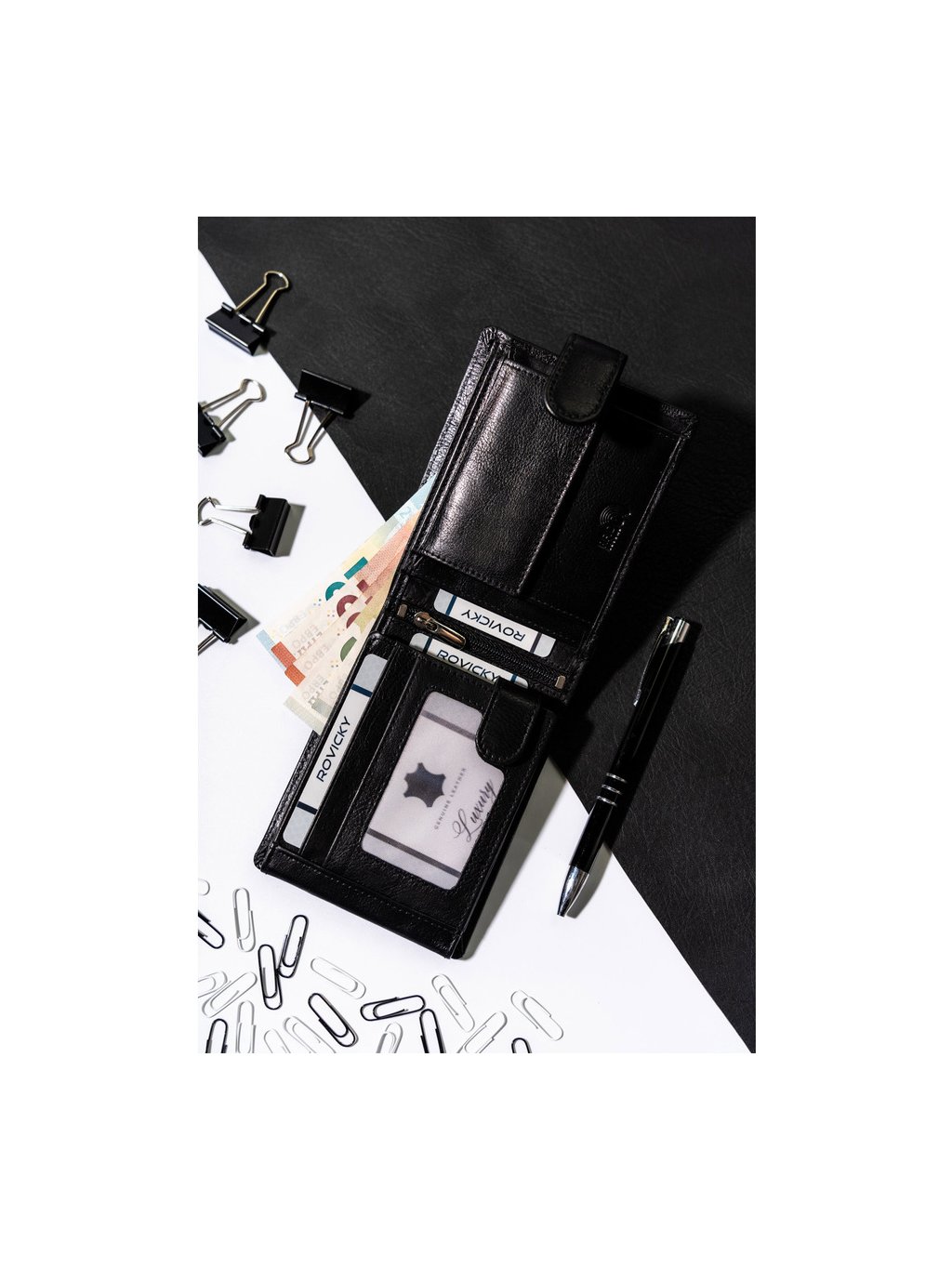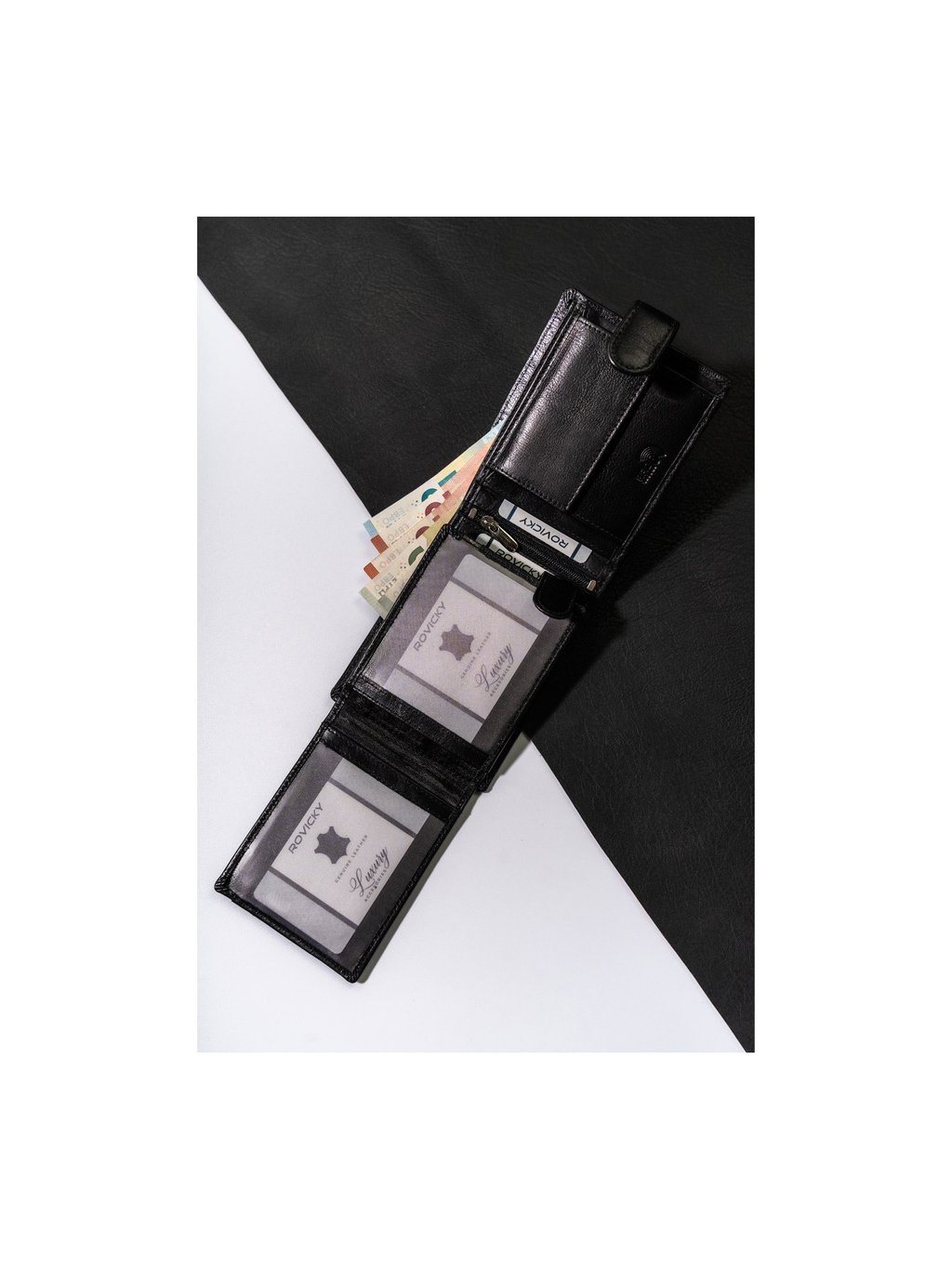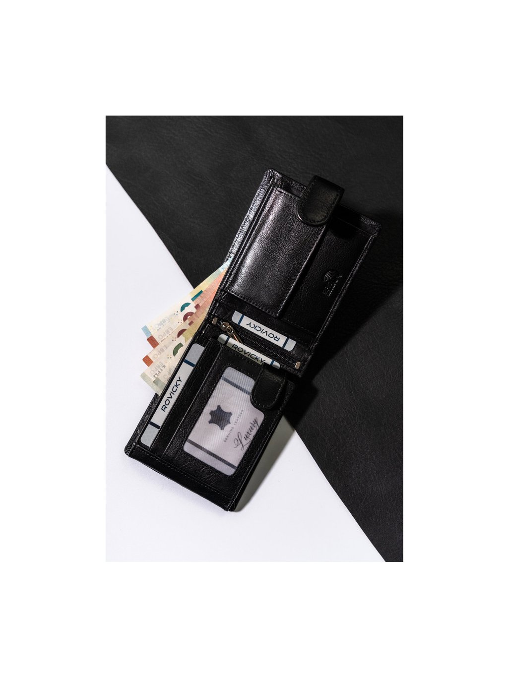 ČERNÁ PÁNSKÁ KOŽENÁ PENĚŽENKA S RFID OCHRANOU ROVICKY L229