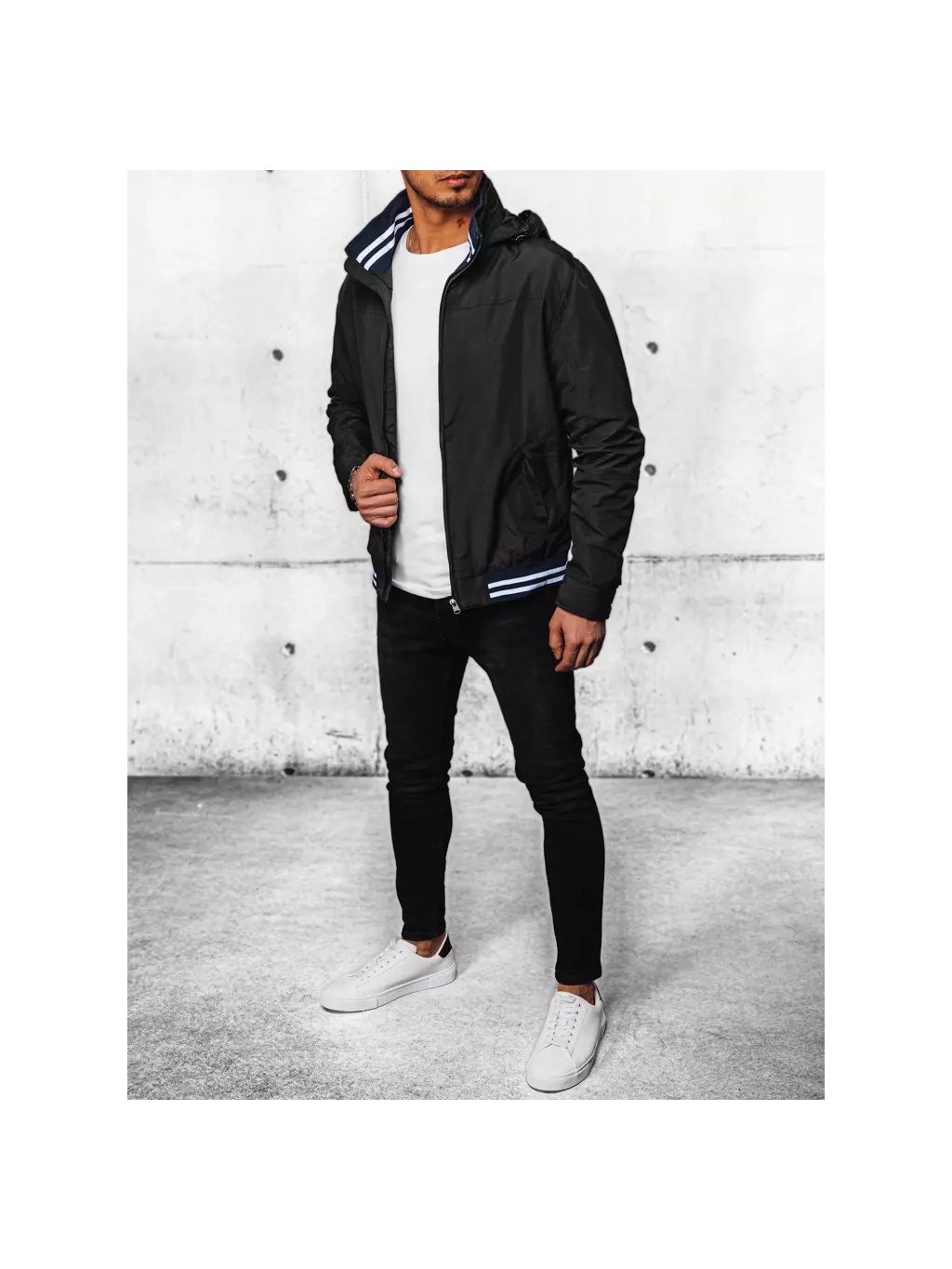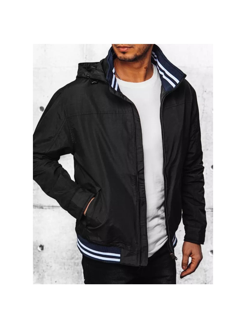 ČERNÁ PÁNSKÁ PŘECHODNÁ BUNDA S KAPUCÍ