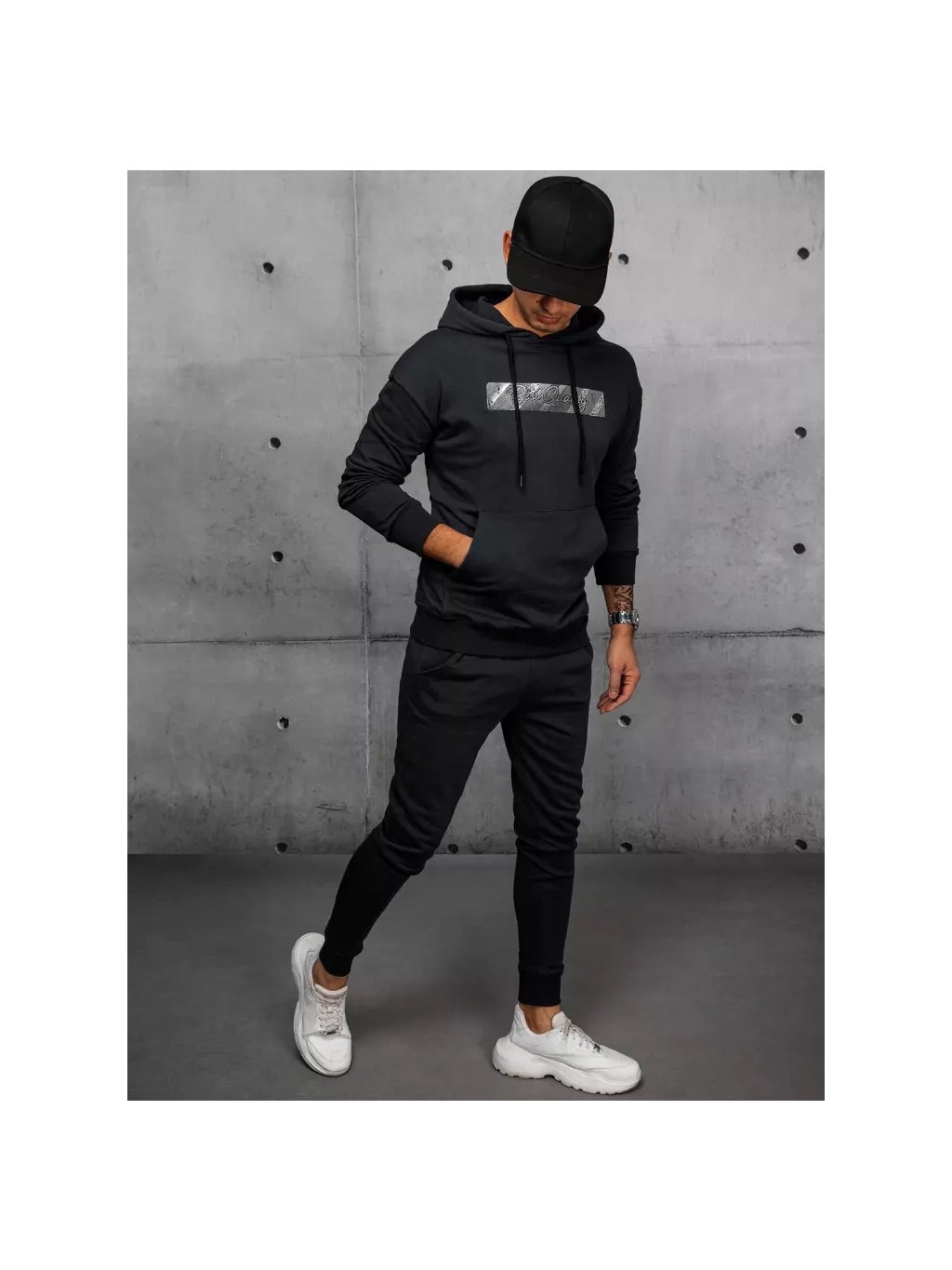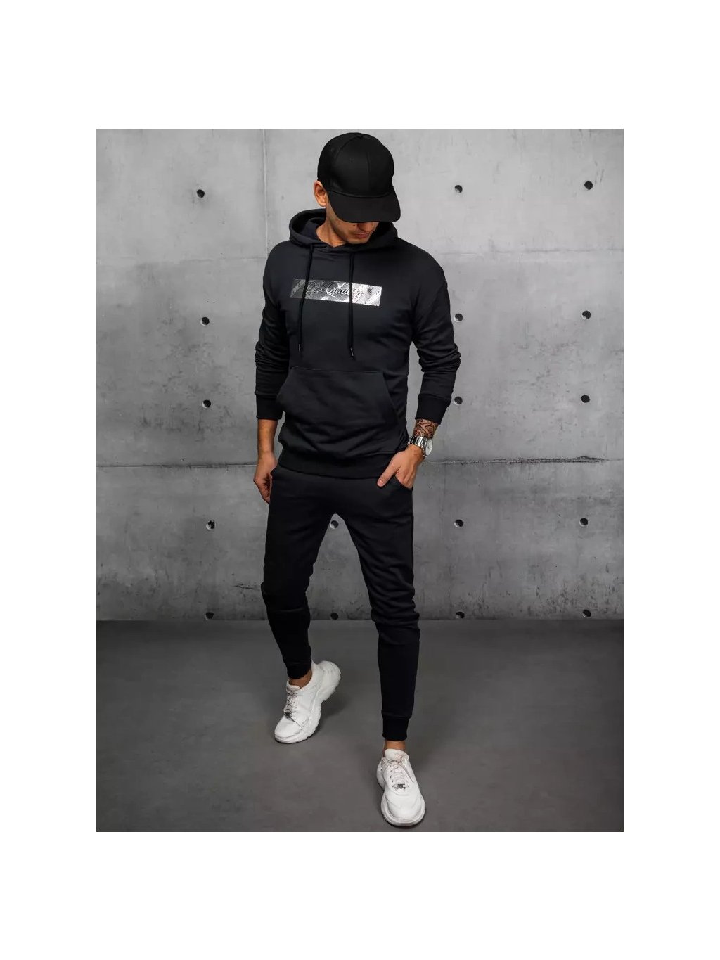 ČERNÁ PÁNSKÁ TEPLÁKOVÁ SOUPRAVA SE STŘÍBRNÝM PRUHEM