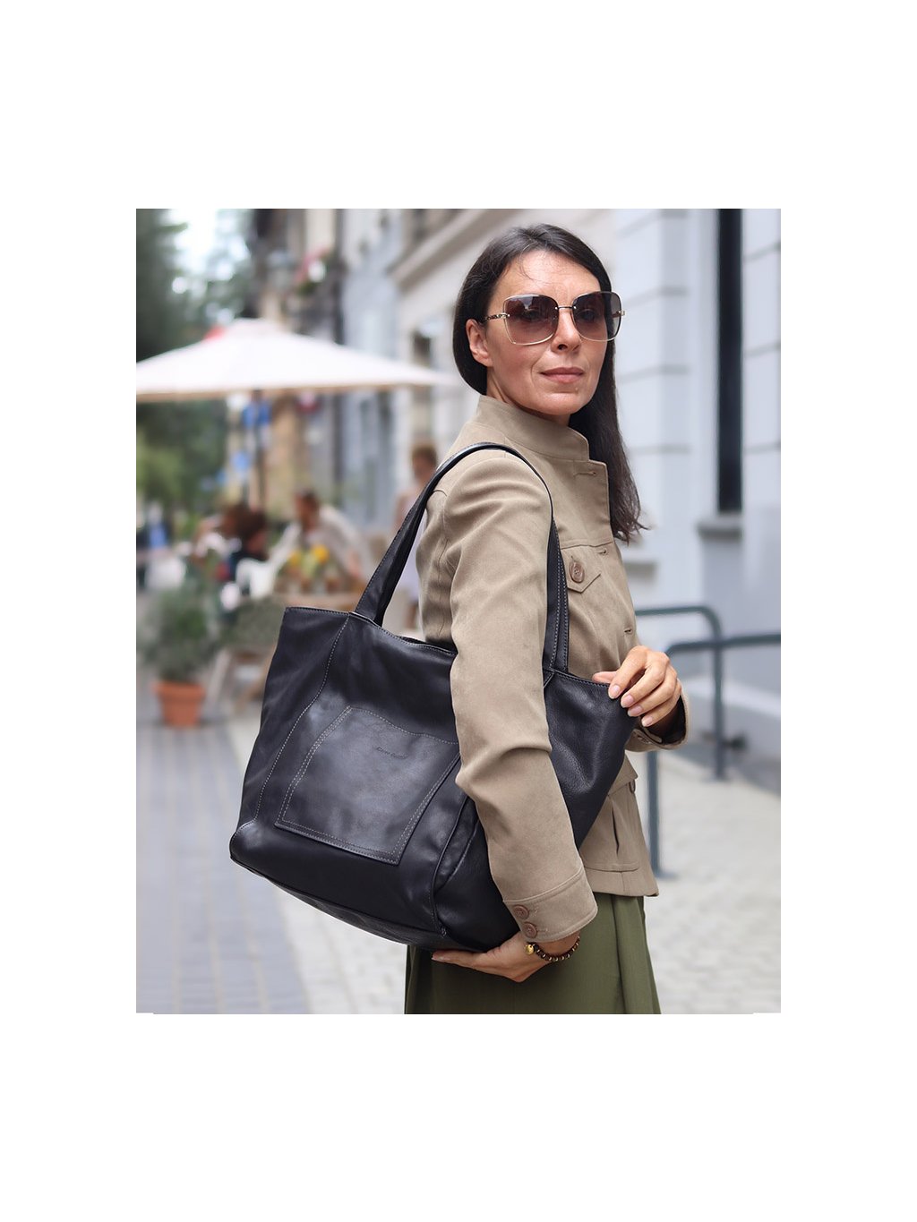 ČERNÁ PROSTORNÁ KOŽENÁ SHOPPER KABELKA