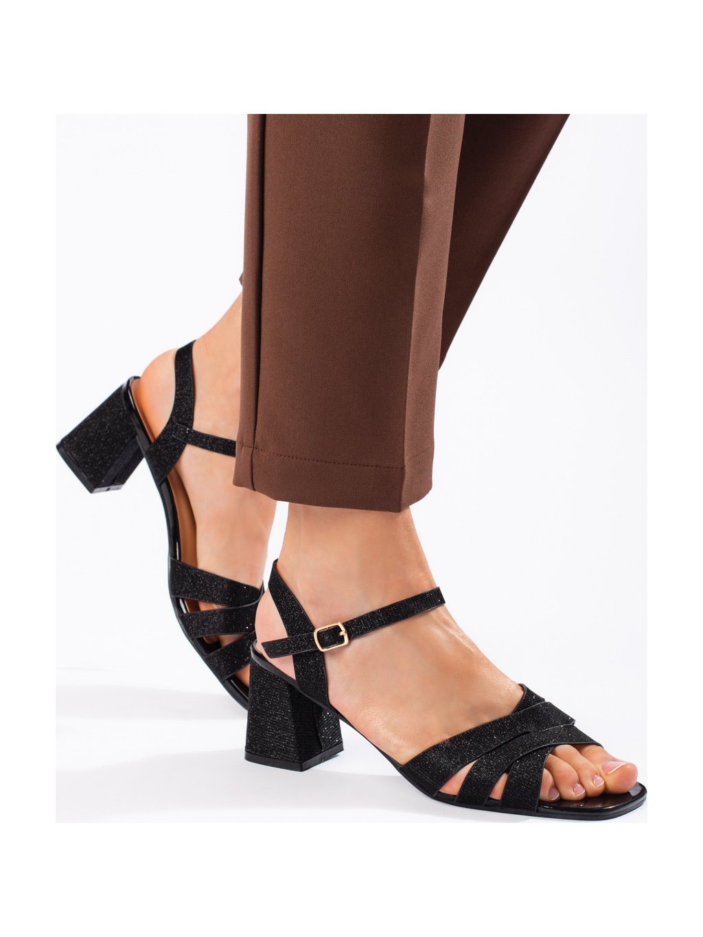 ČERNÉ BROKÁTOVÉ SANDÁLY NA PODPATKU