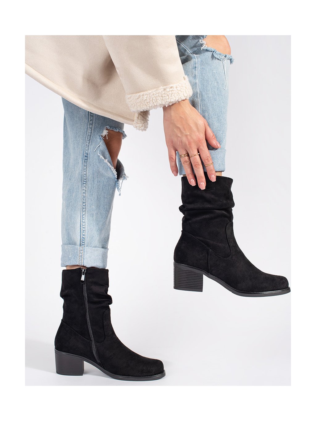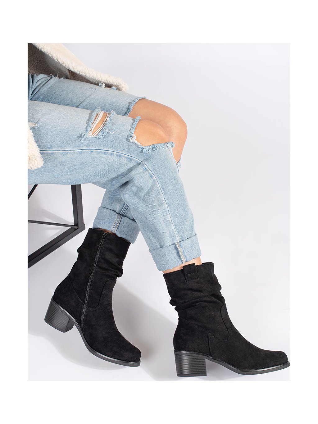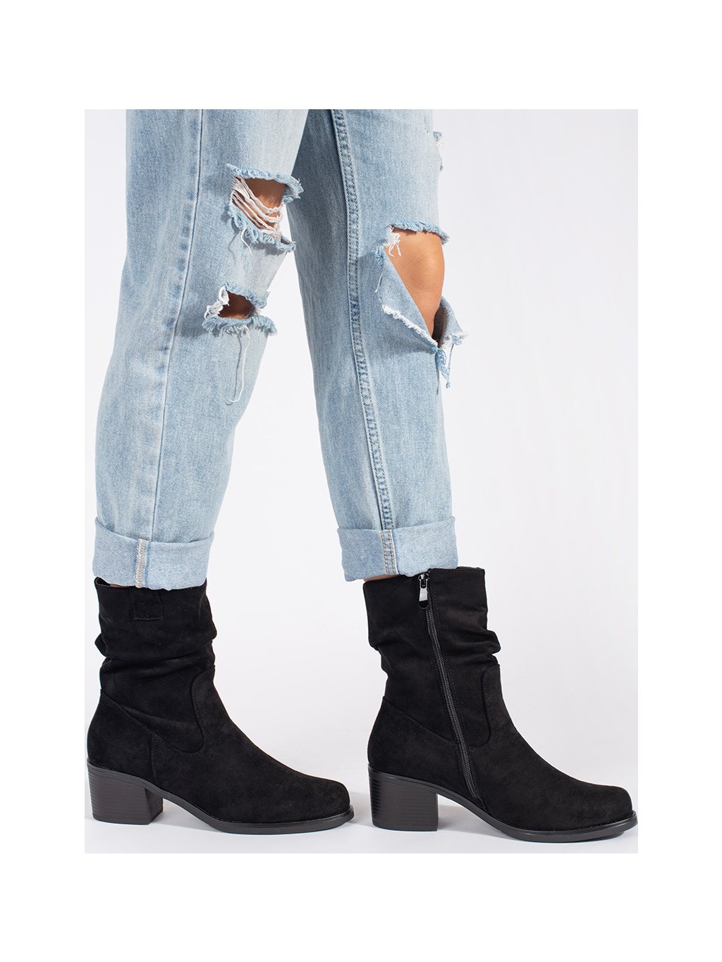 ČERNÉ DÁMSKÉ KOVBOJKY S ŘASENÝM SVRŠKEM