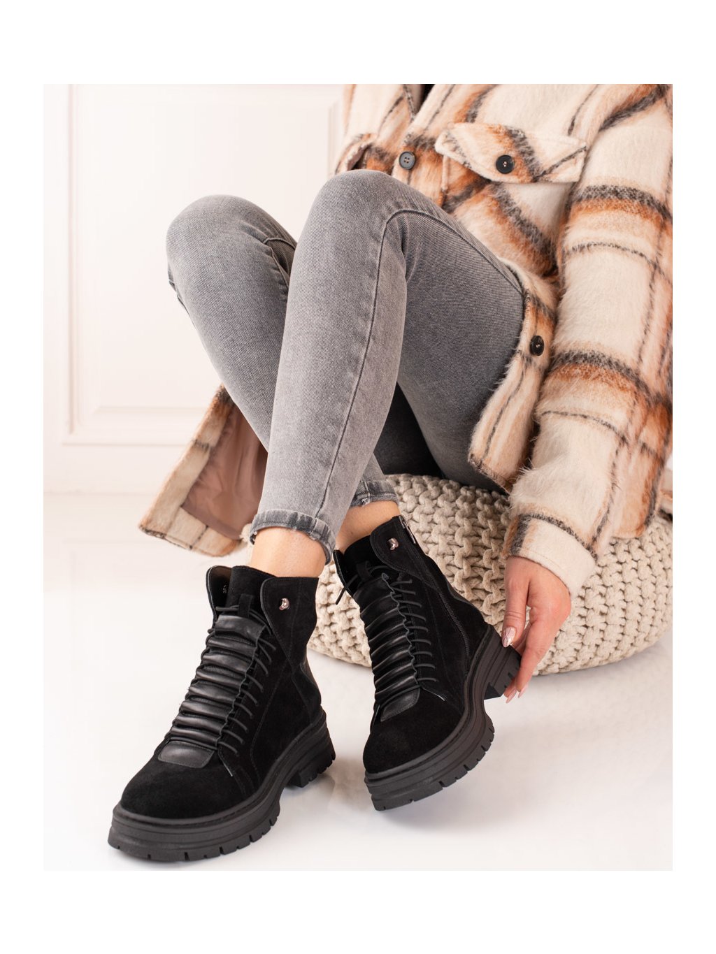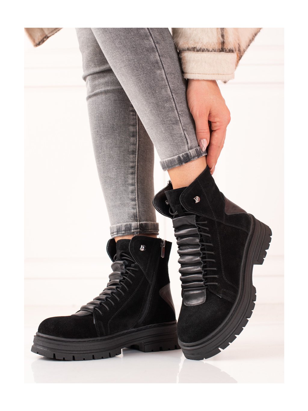 ČERNÉ DÁMSKÉ KOŽENÉ WORKERY