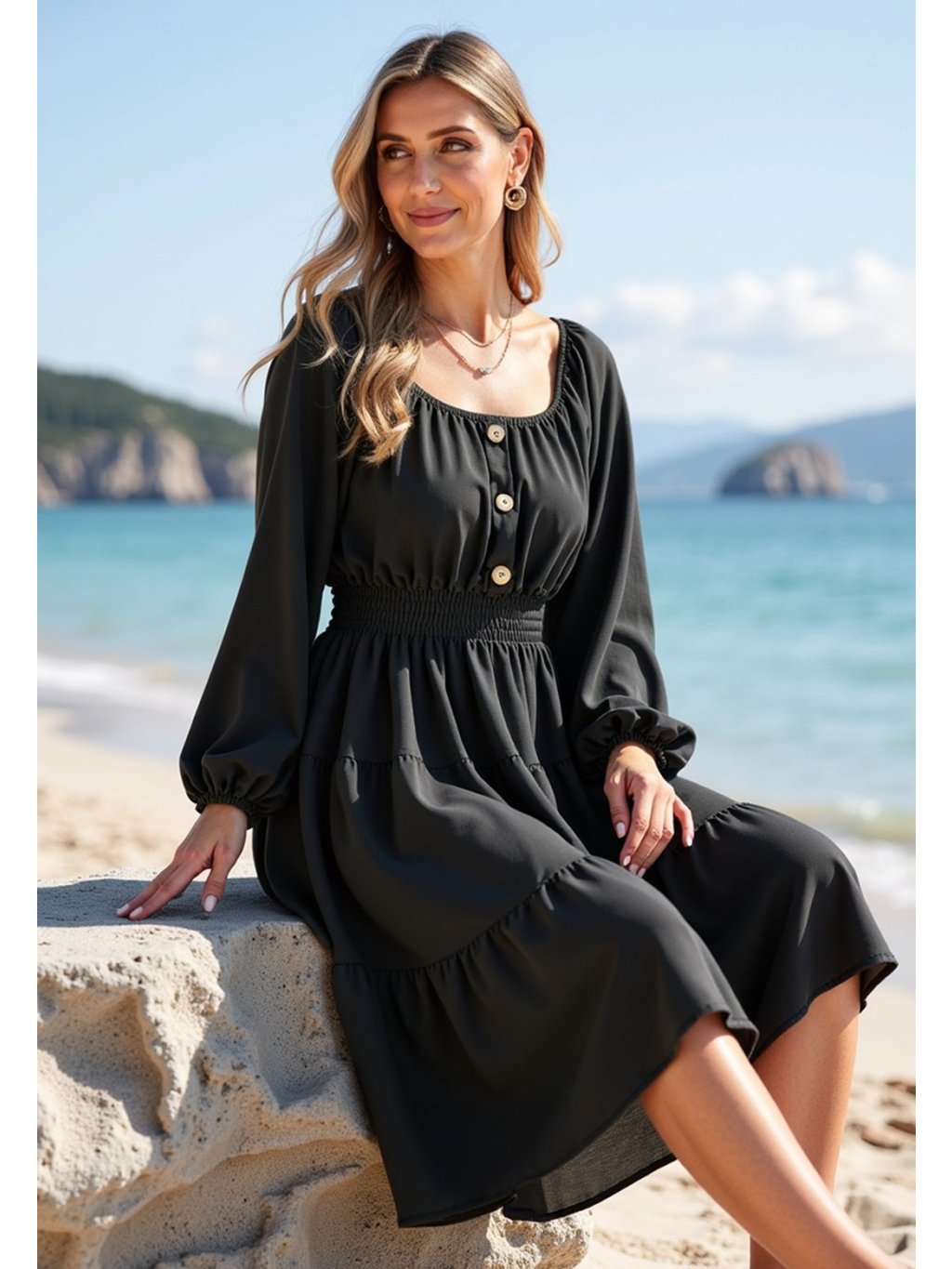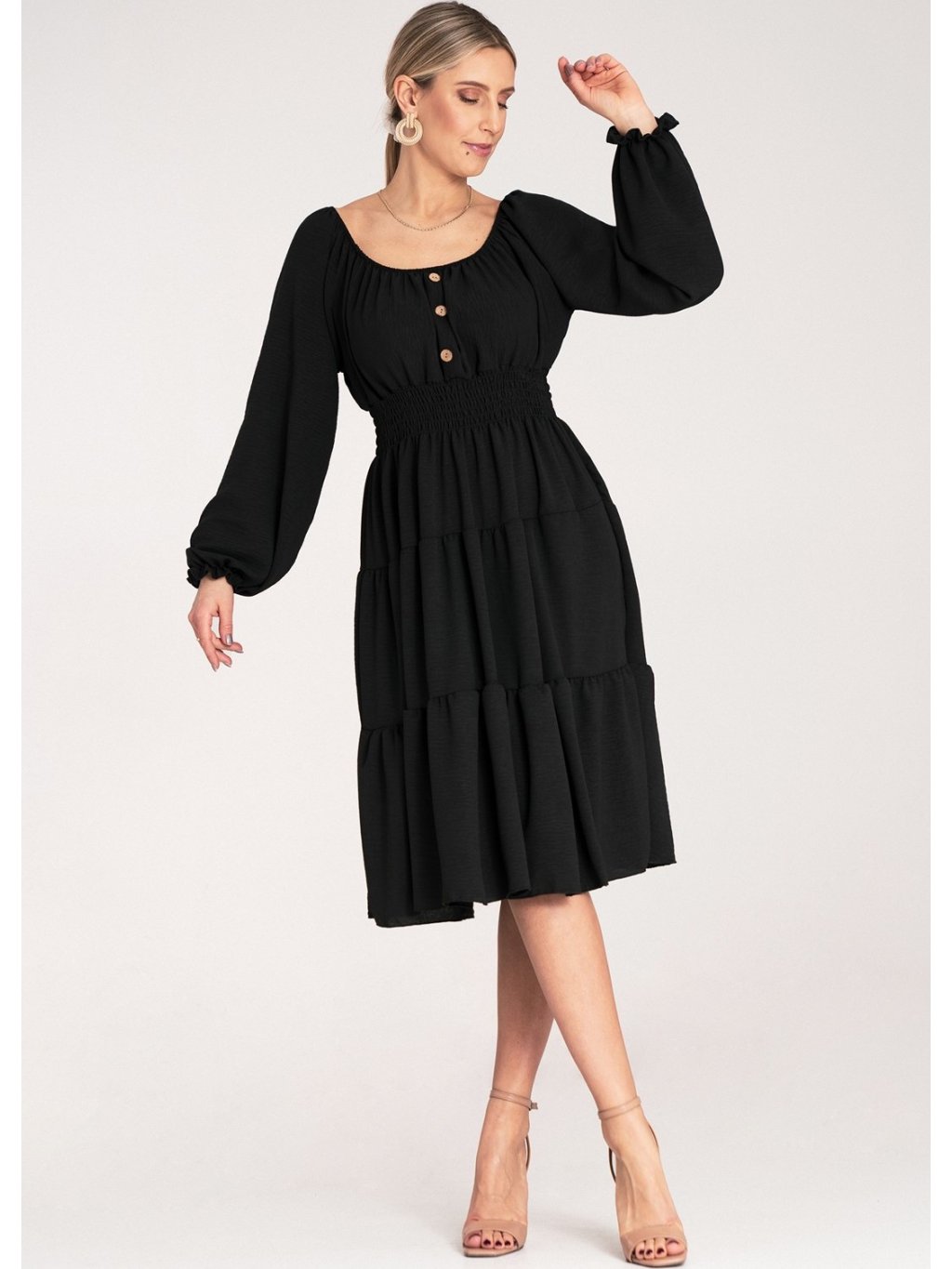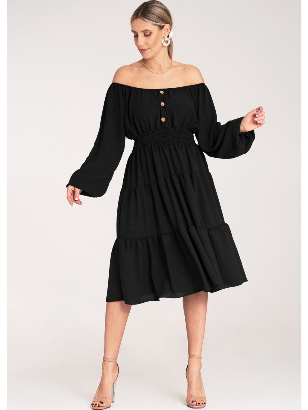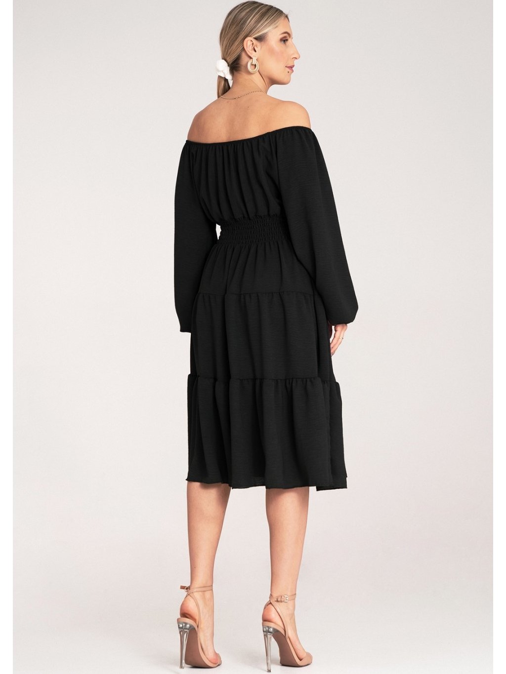 ČERNÉ DÁMSKÉ MIDI ŠATY S ODHALENÝMI RAMENY