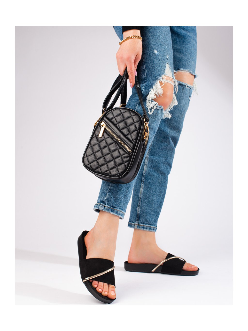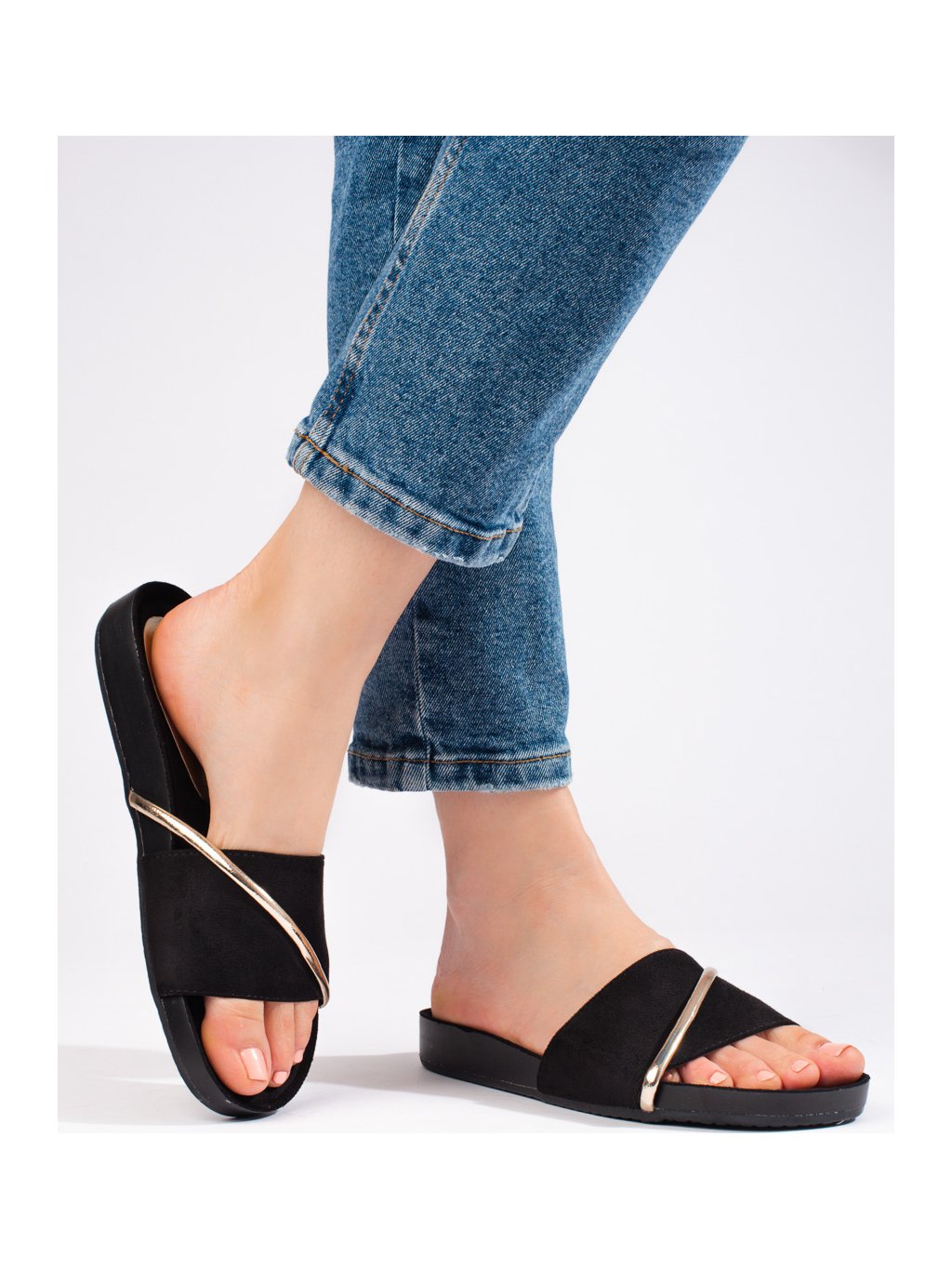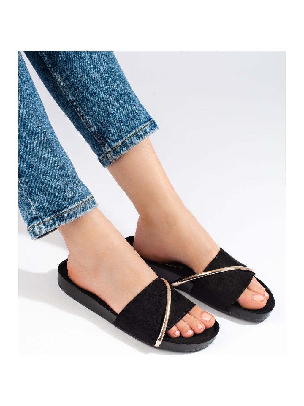 ČERNÉ DÁMSKÉ PANTOFLE SE ZLATÝM ZDOBENÍM - SHELVT