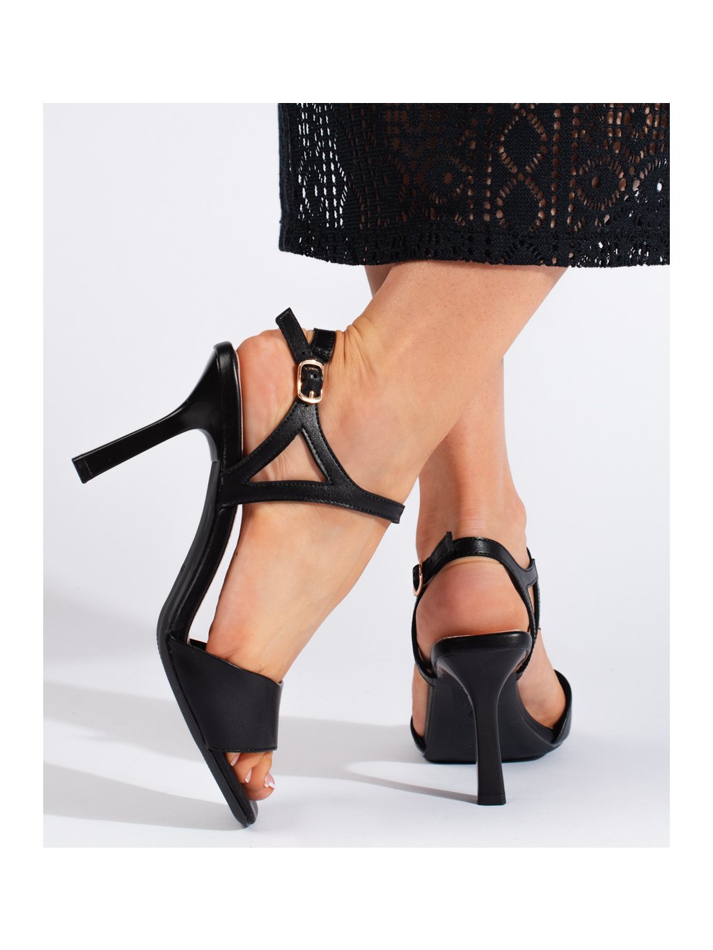 ČERNÉ DÁMSKÉ SANDÁLY NA TENKÉM PODPATKU