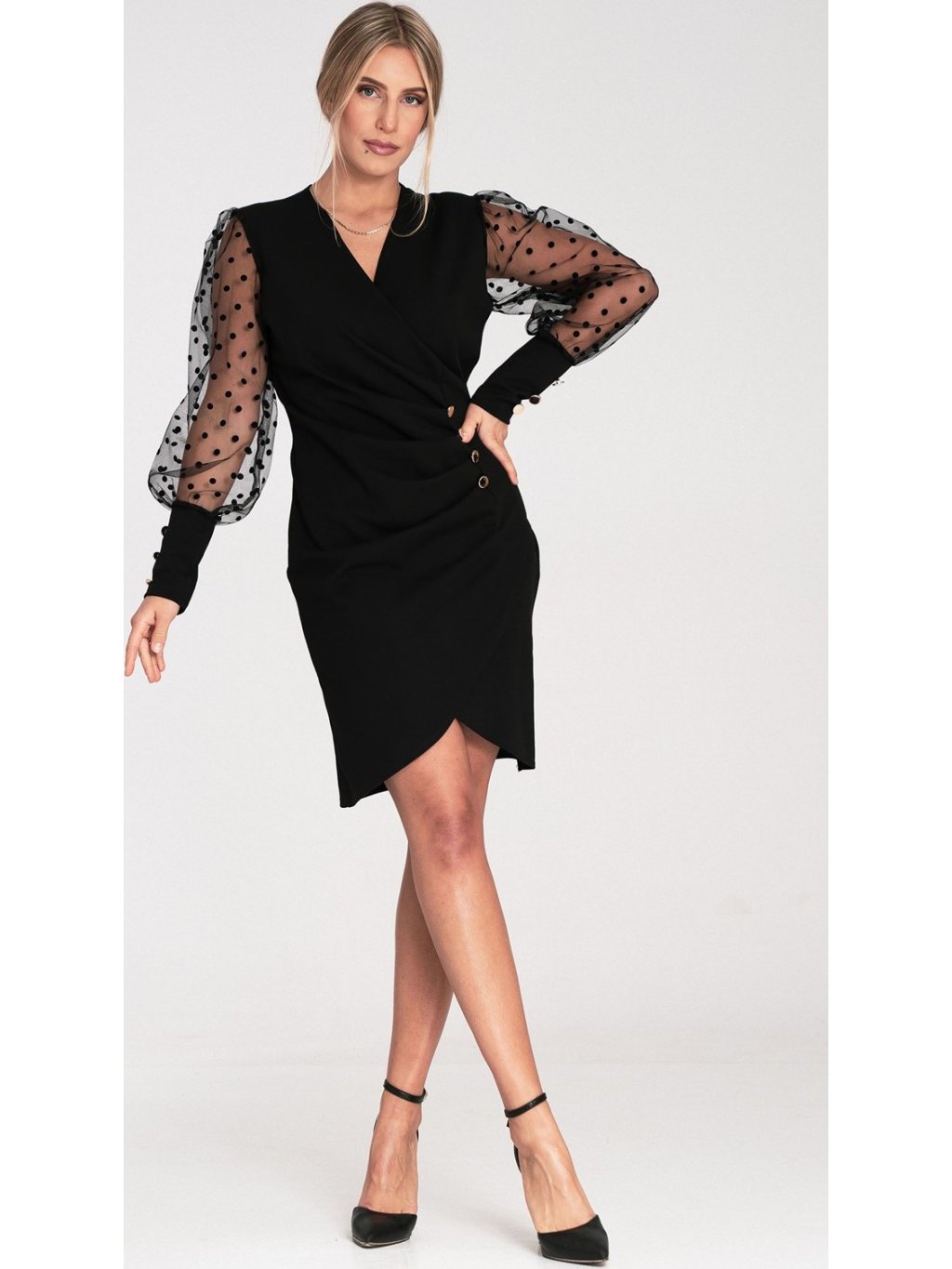 ČERNÉ DÁMSKÉ ŠATY SE ZLATÝMI OZDOBNÝMI KNOFLÍKY