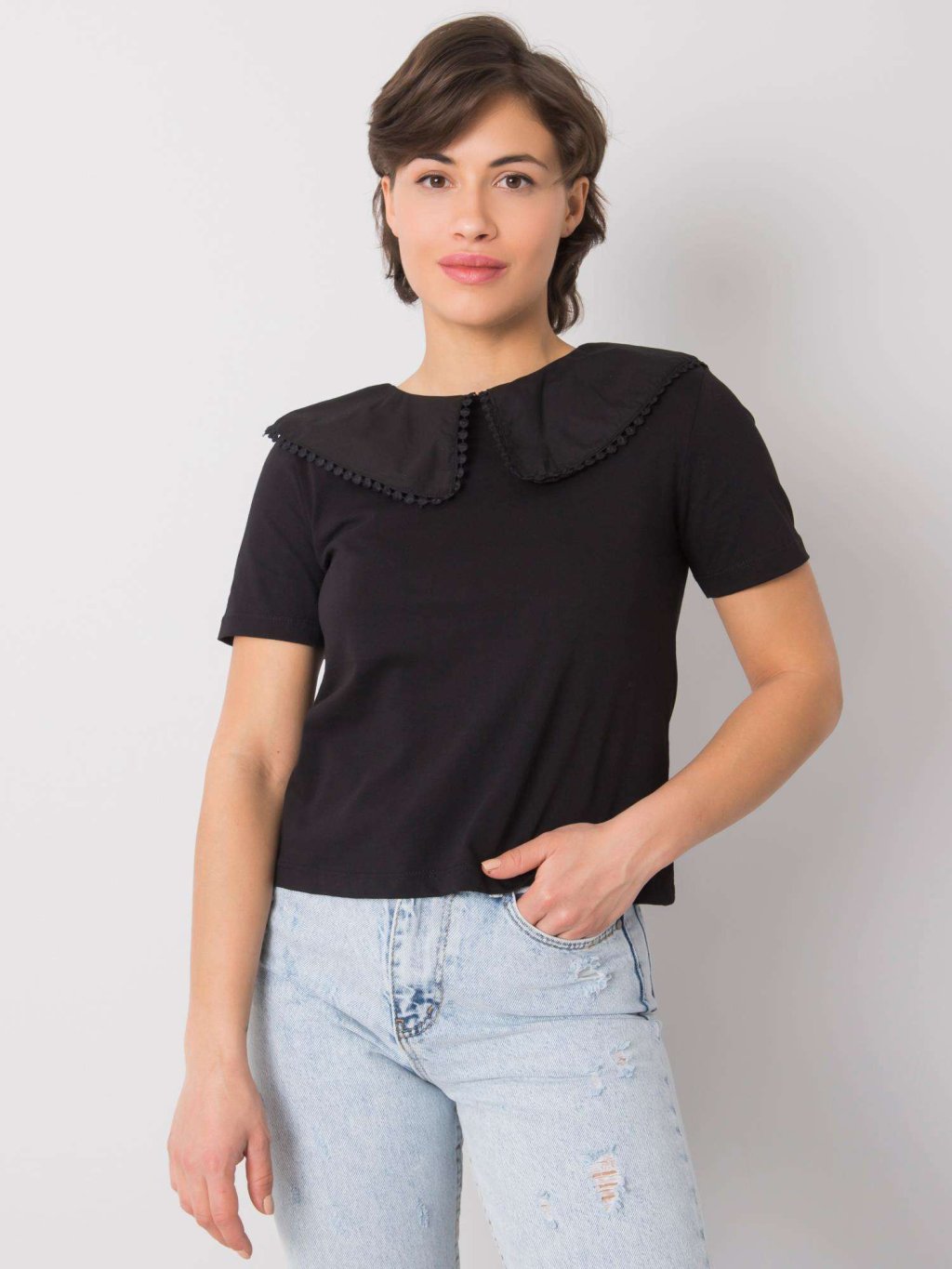 ČERNÉ DÁMSKÉ TRIČKO S LÍMEČKEM