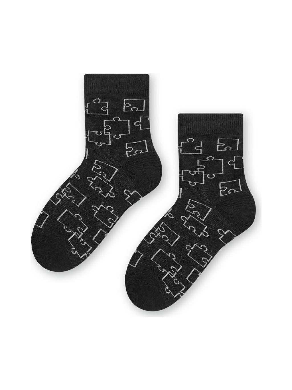 ČERNÉ DĚTSKÉ PONOŽKY S MOTIVEM PUZZLE ART.084