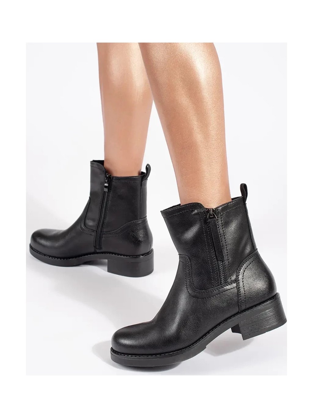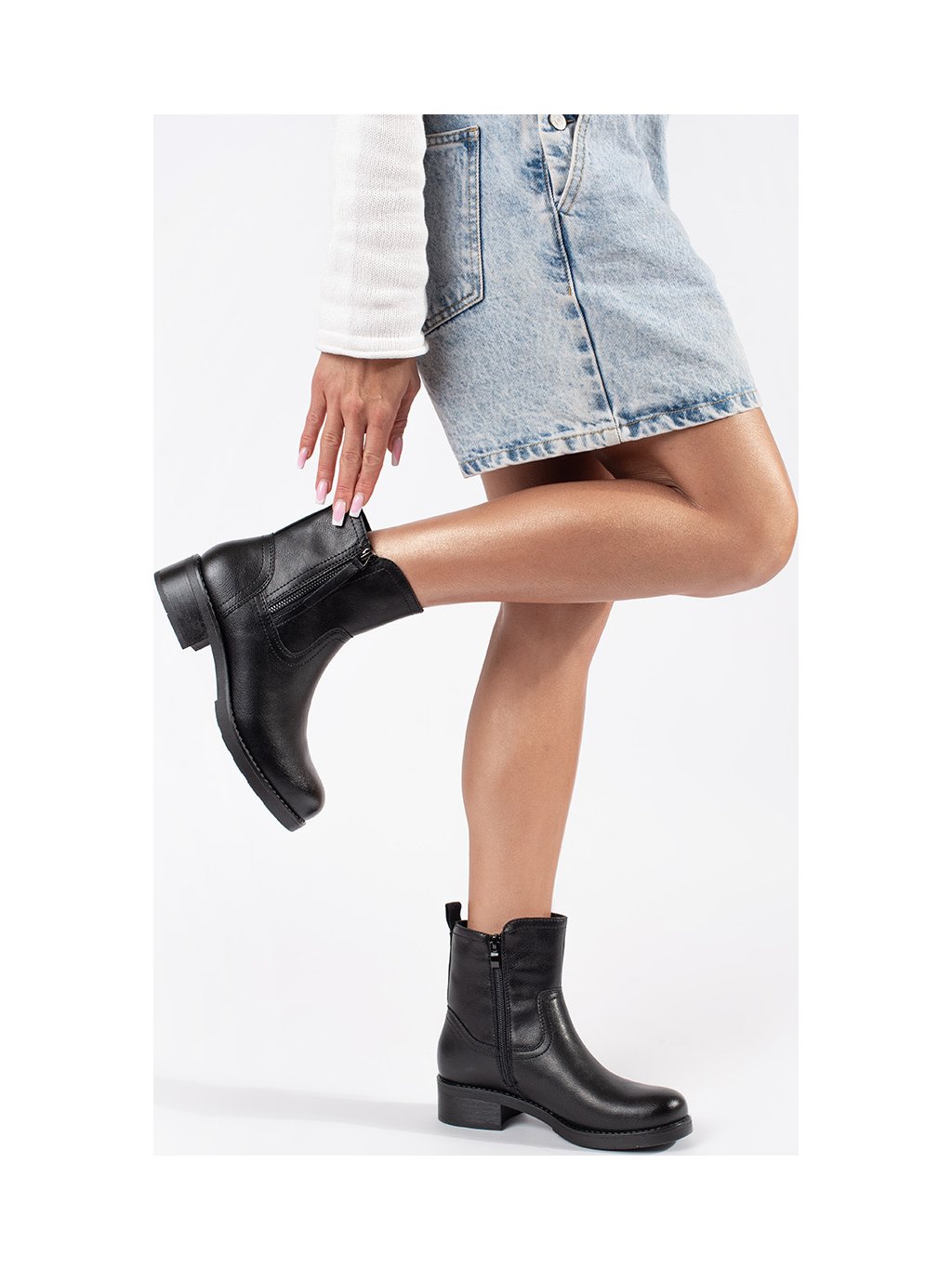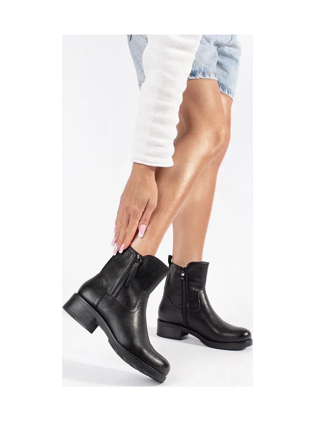 ČERNÉ KOŽENÉ DÁMSKÉ KOTNÍKOVÉ BOTY SERGIO LEONE, PODPATEK 4 CM