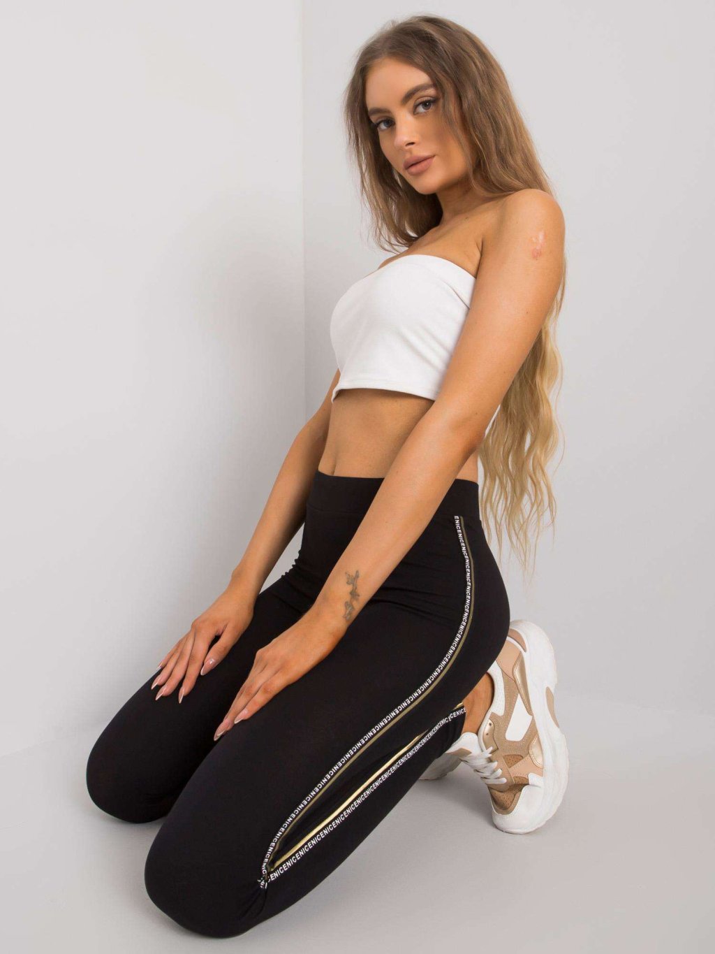 ČERNÉ LEGÍNY SE ZLATÝM PRUHEM A NÁPISY