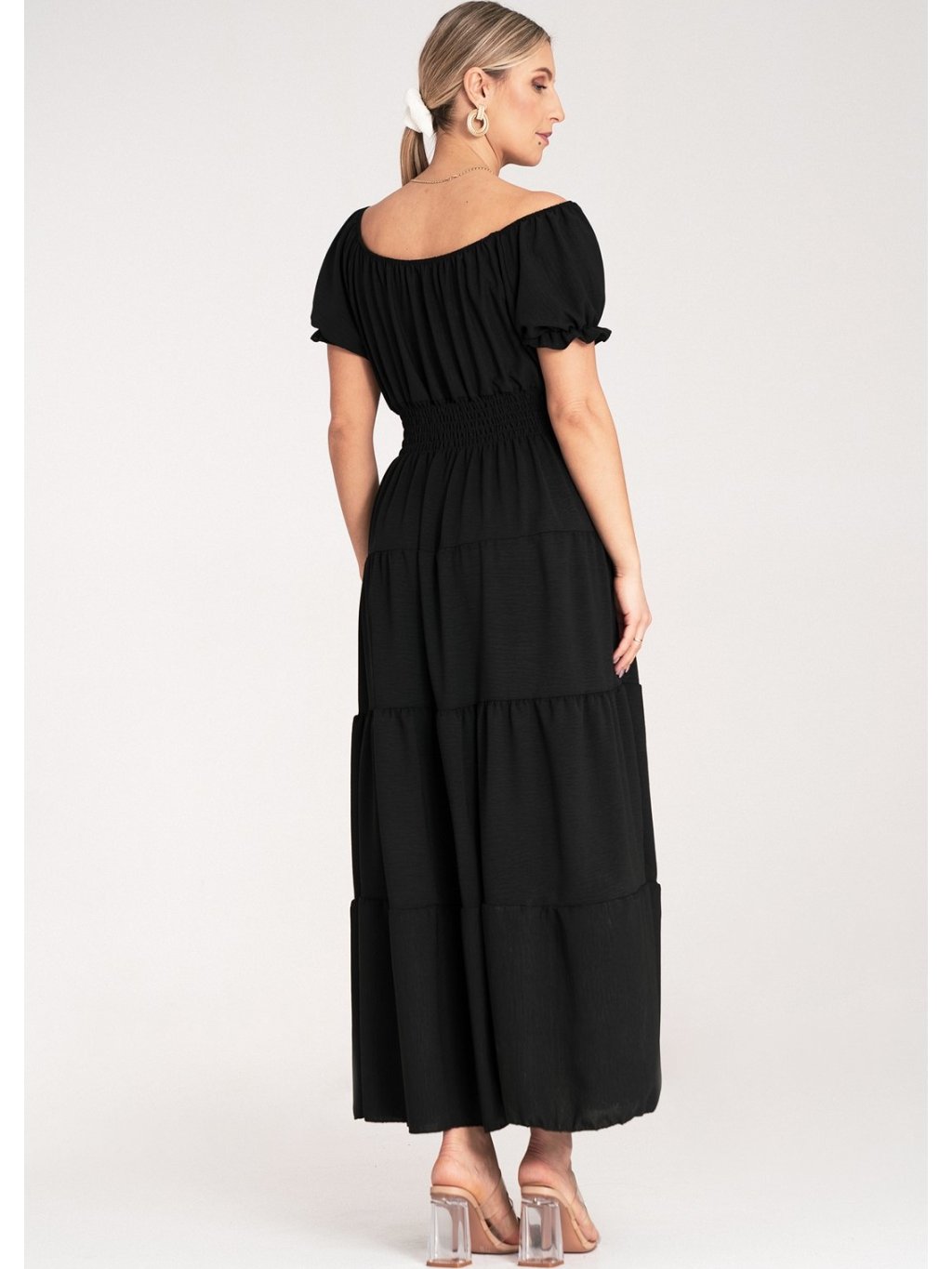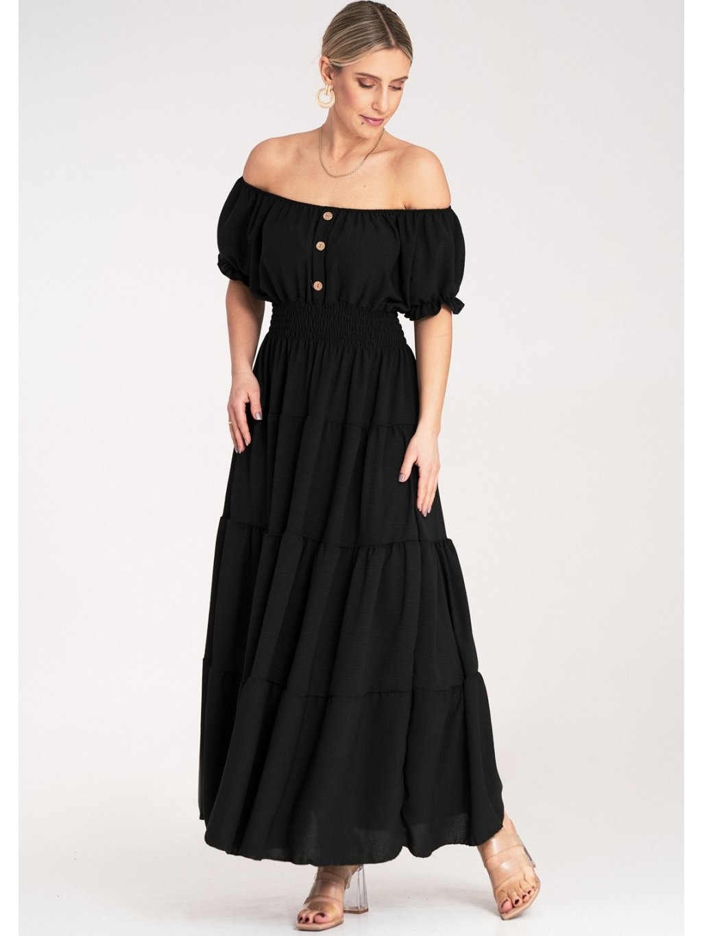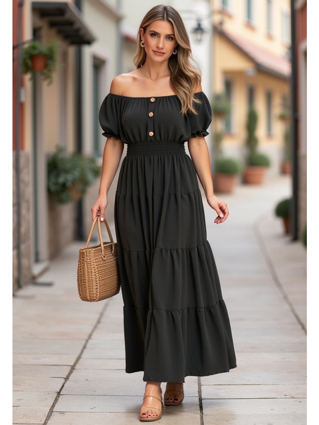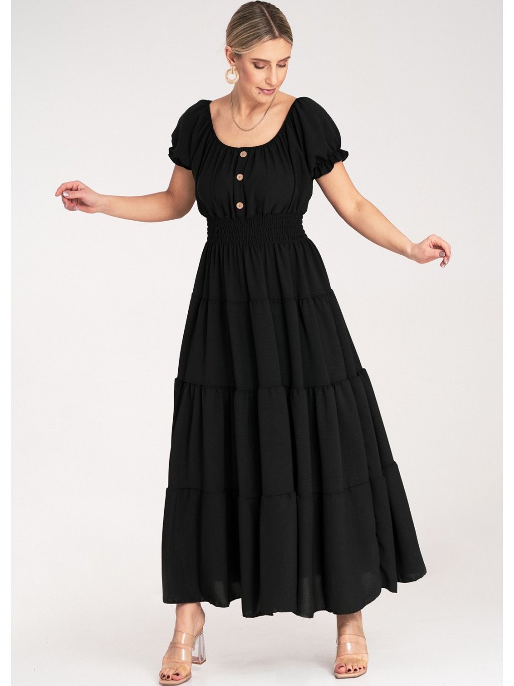 ČERNÉ LETNÍ MAXI ŠATY S KRÁTKÝMI BALÓNOVÝMI RUKÁVY