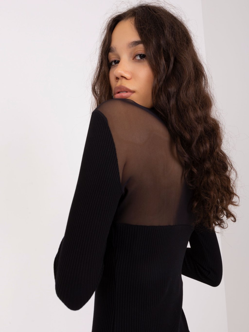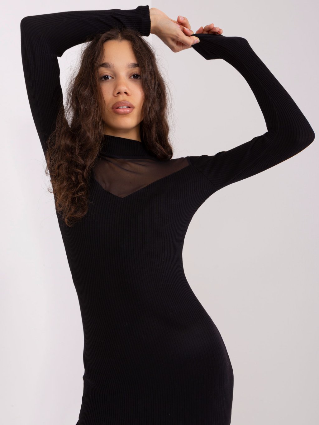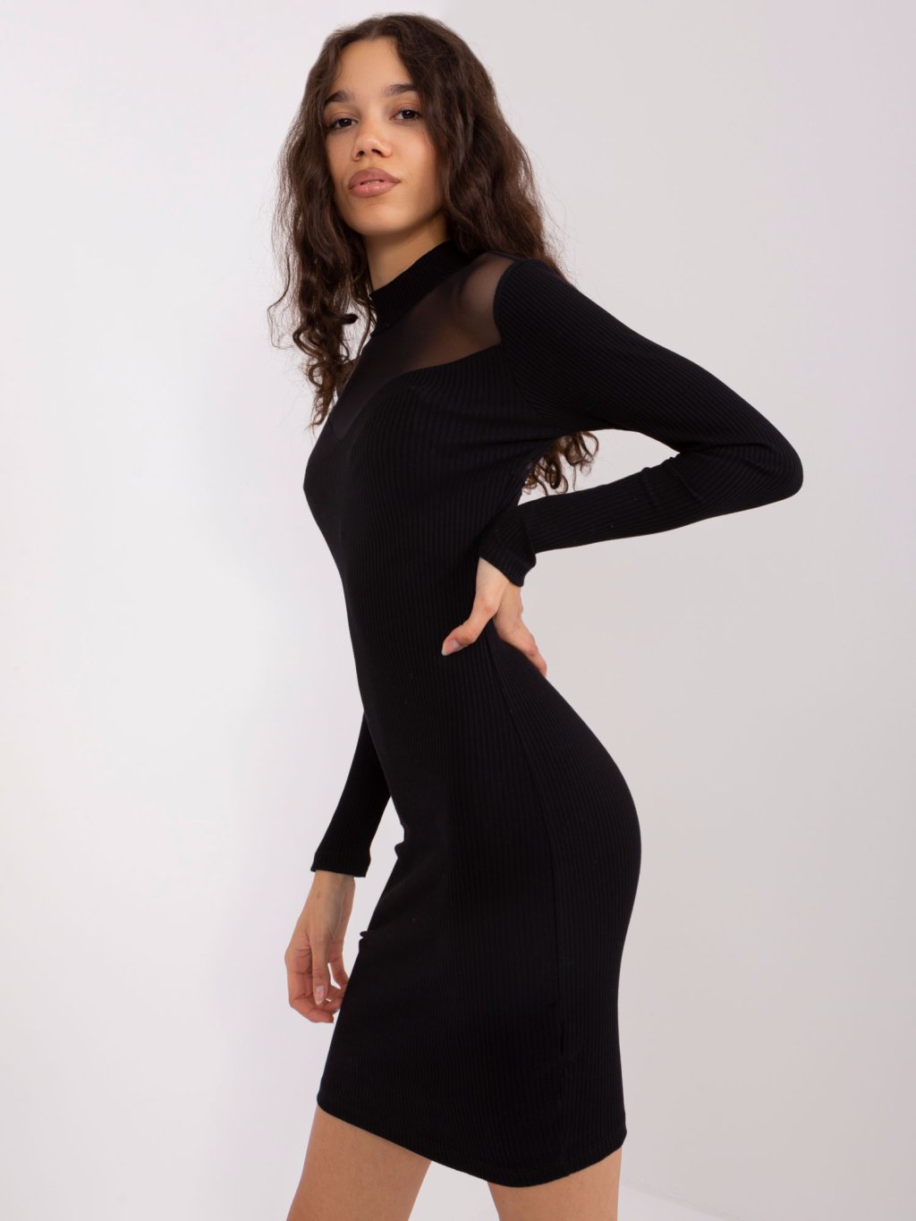 ČERNÉ MINI ŠATY S PRŮSVITNÝM VÝSTŘIHEM A ZÁDY
