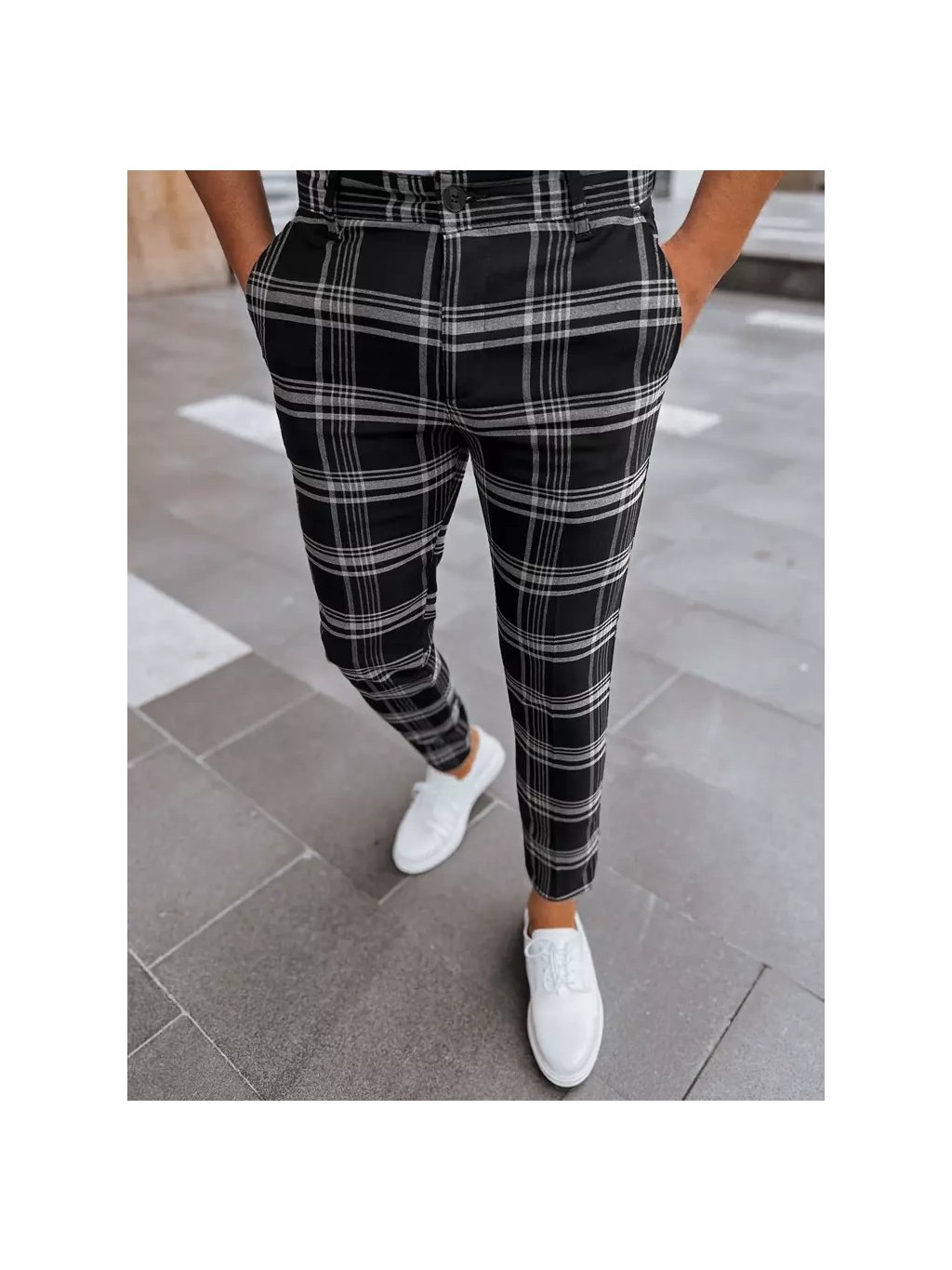 ČERNÉ PÁNSKÉ KÁROVANÉ CHINO KALHOTY