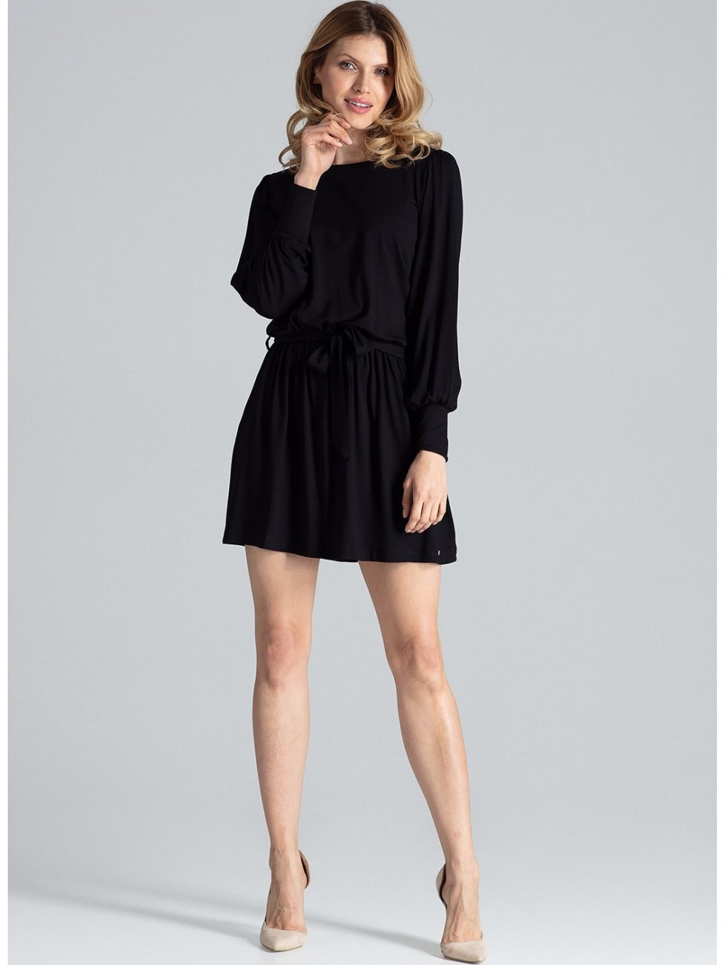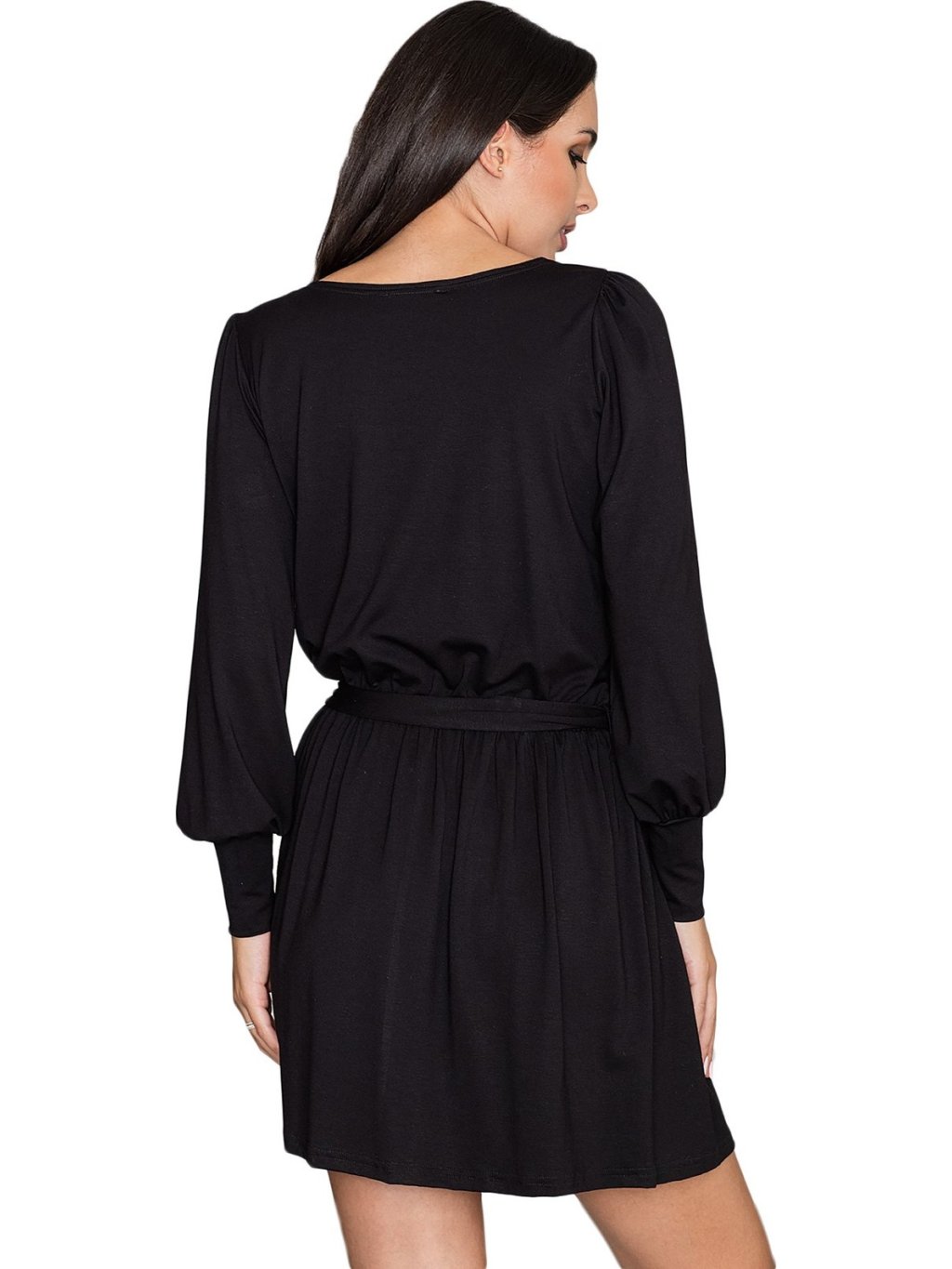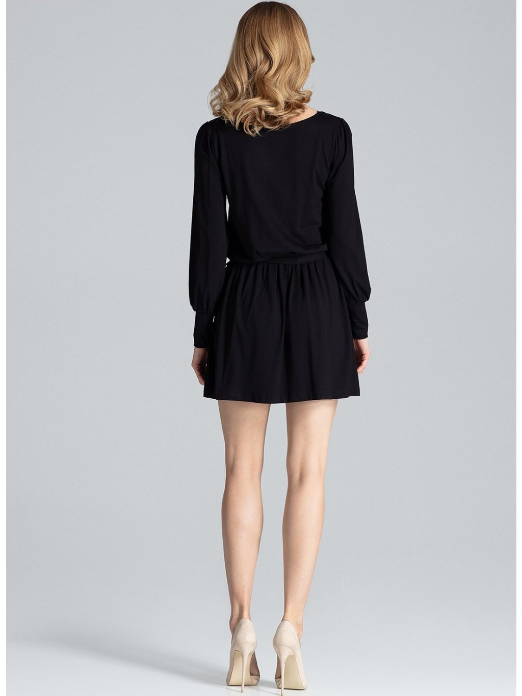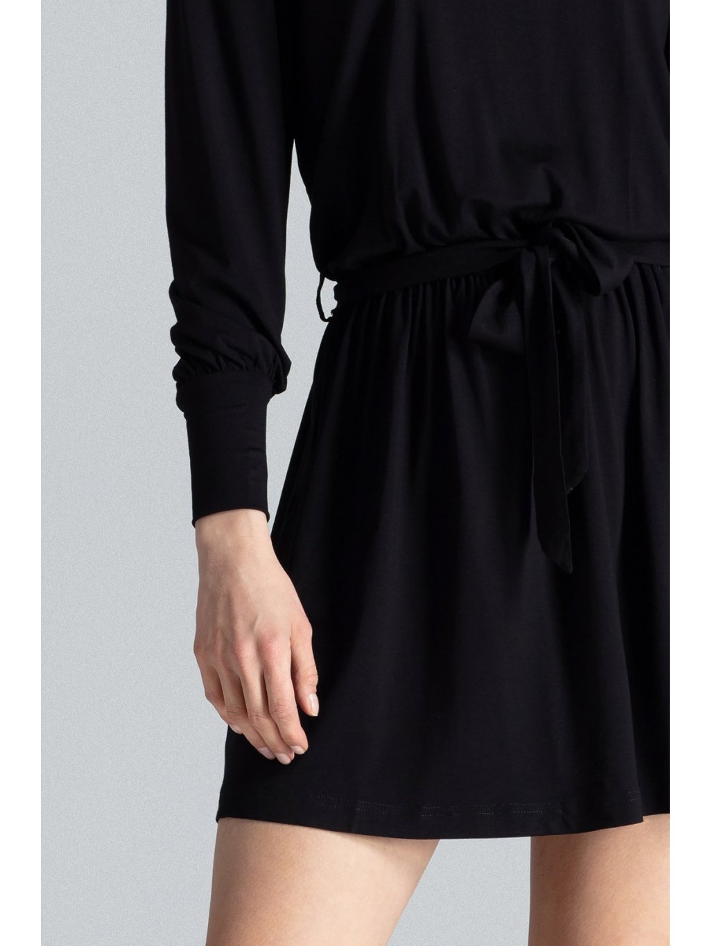 Rukávy jsou dlouhé, sukně kratšího střihu.