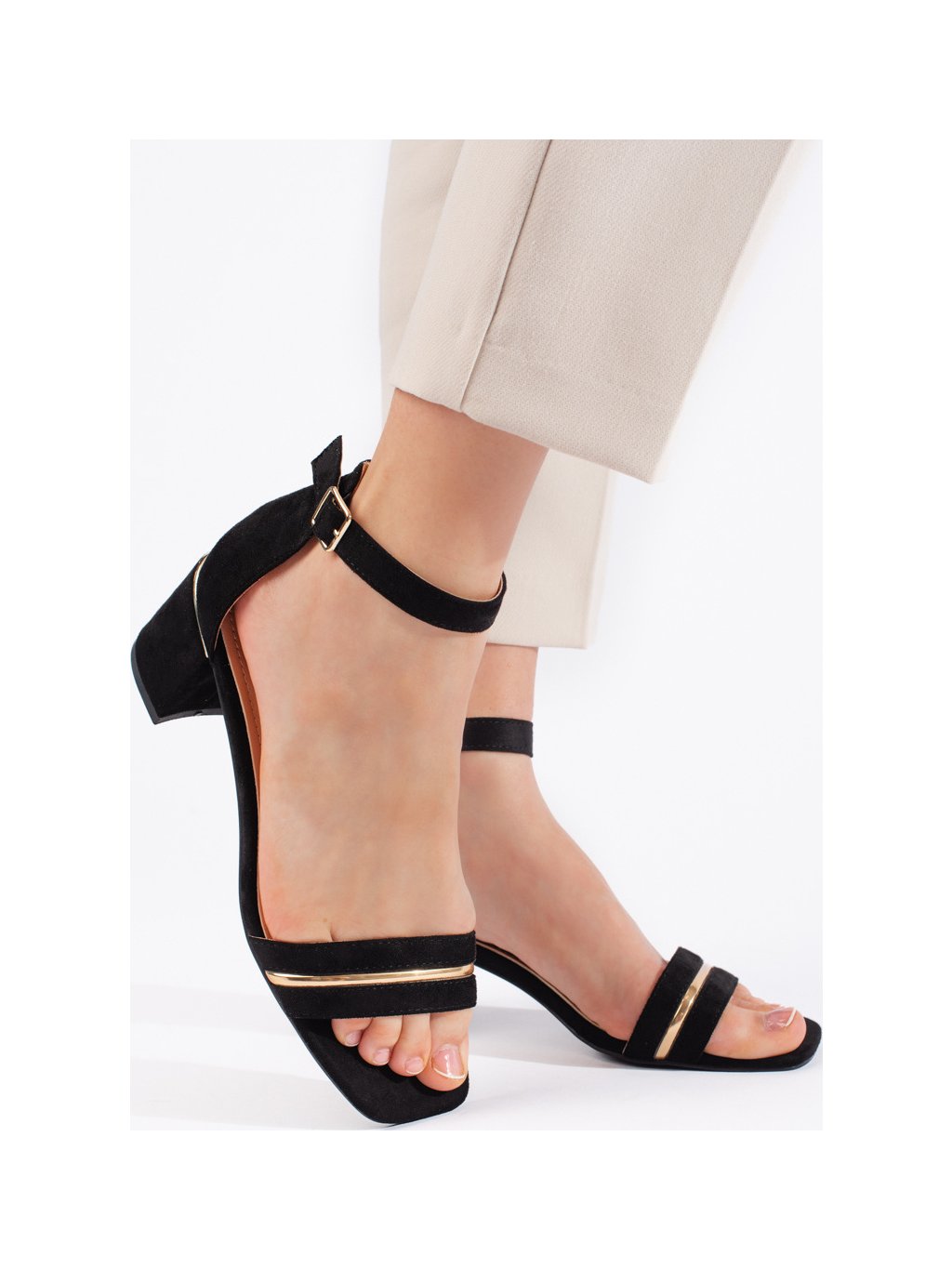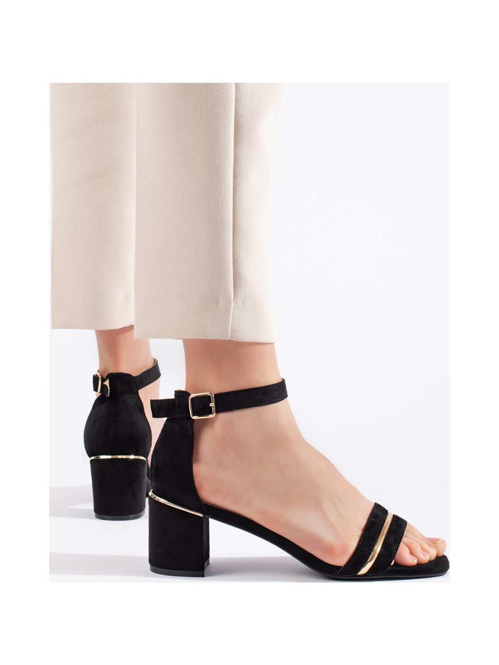 ČERNÉ SEMIŠOVÉ SANDÁLY NA SLOUPKOVÉM PODPATKU