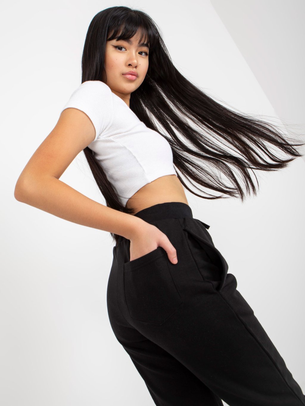 Modelka na obrázcích je vysoká 167 cm, obvod přes prsa 73 cm, obvod pasu 64 cm a boky 91 cm.