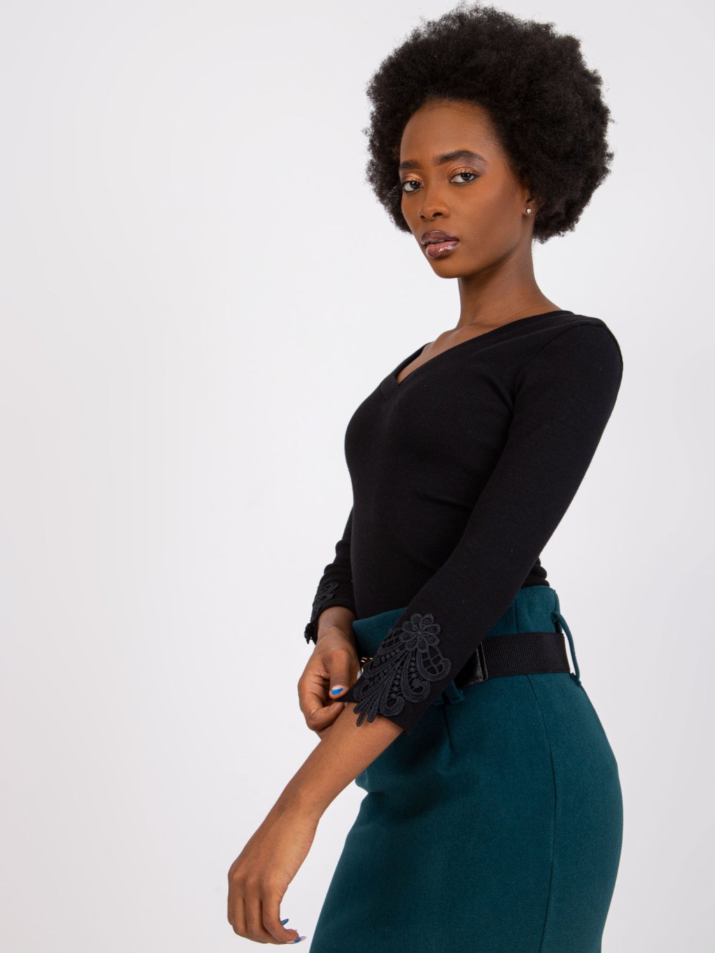 ČERNÉ ŽEBROVANÉ TRIČKO ALISSIA S KRAJKOU NA RUKÁVECH