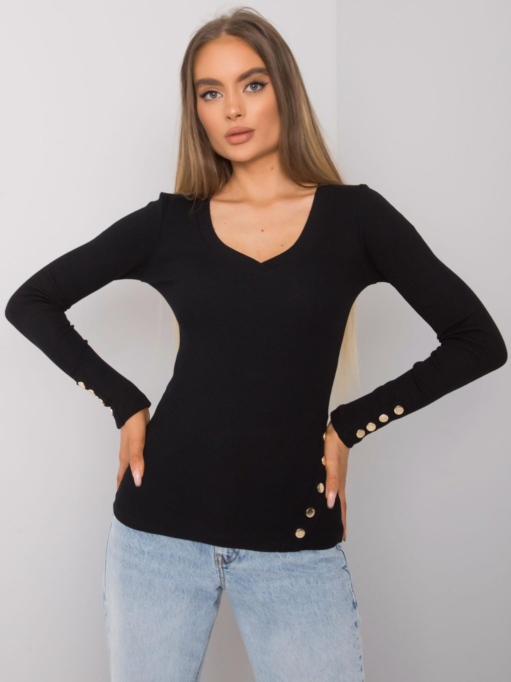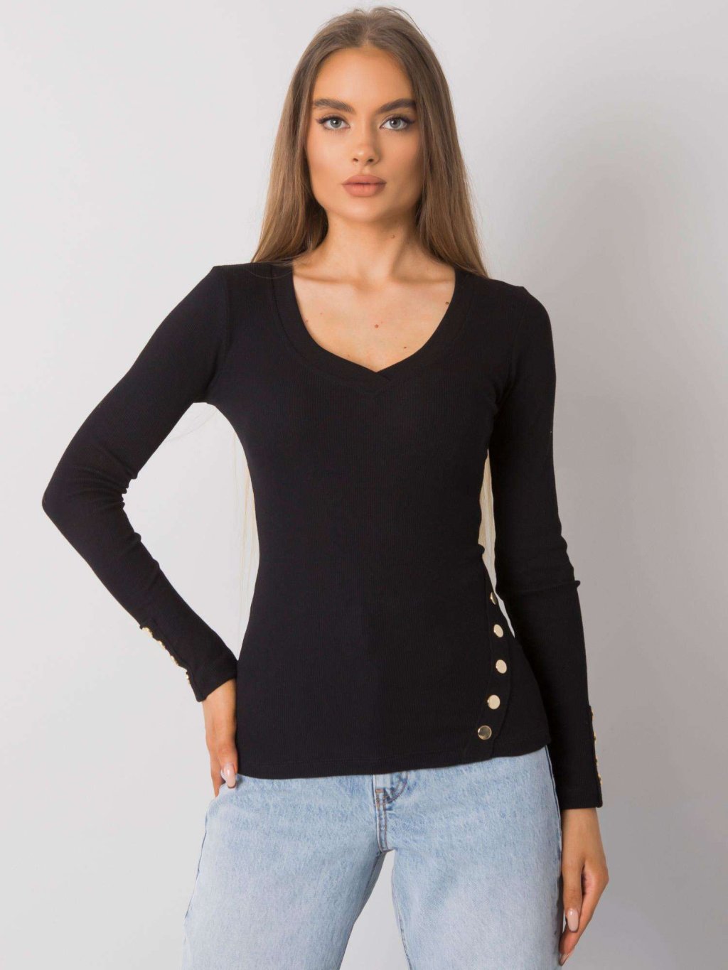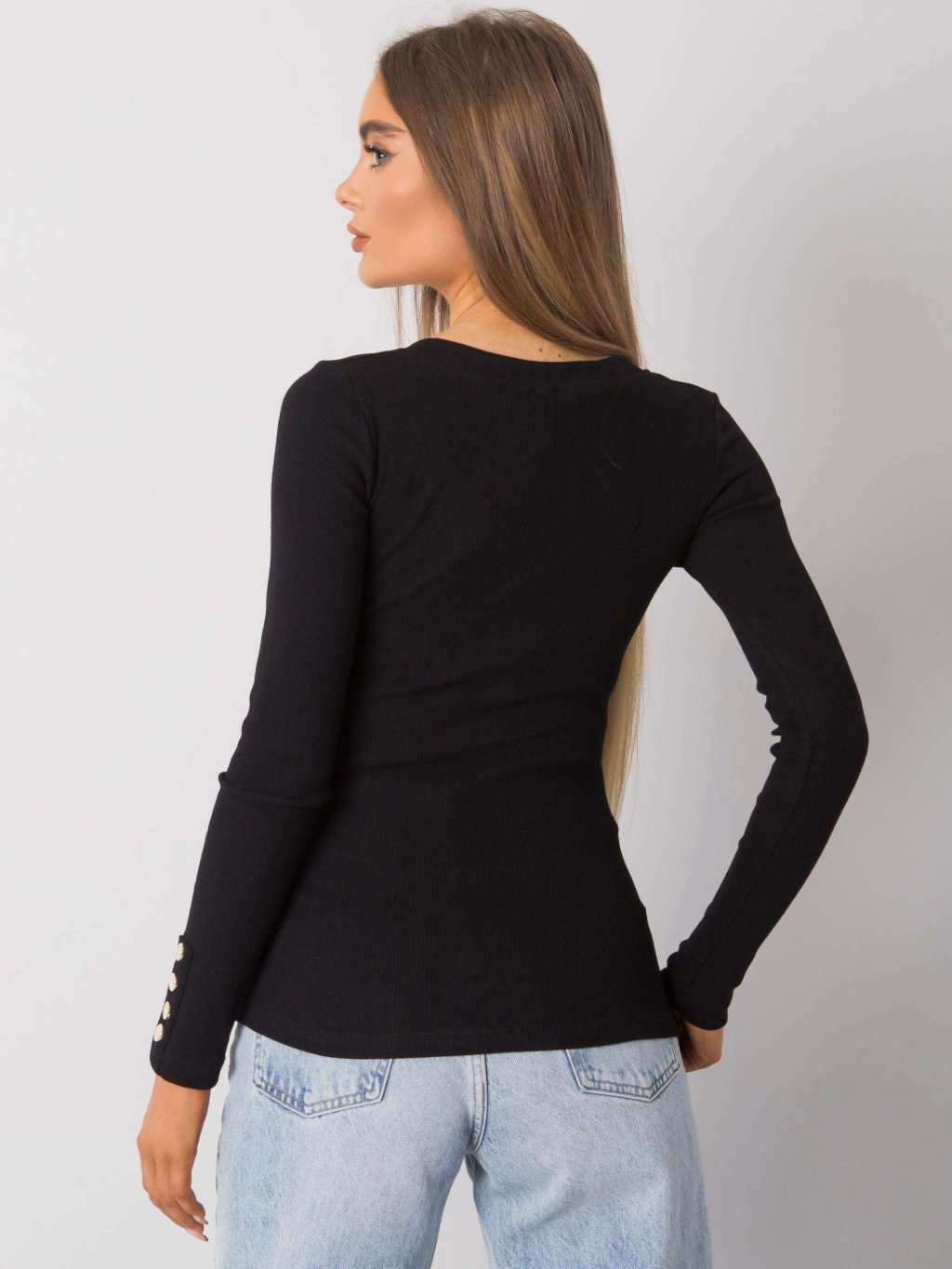 ČERNÉ ŽEBROVANÉ TRIČKO S OZDOBNÝMI KNOFLÍKY