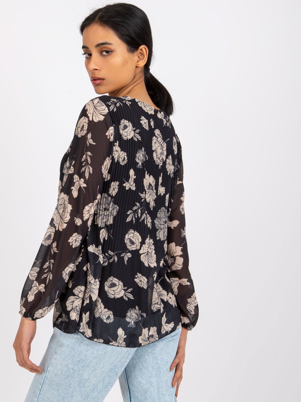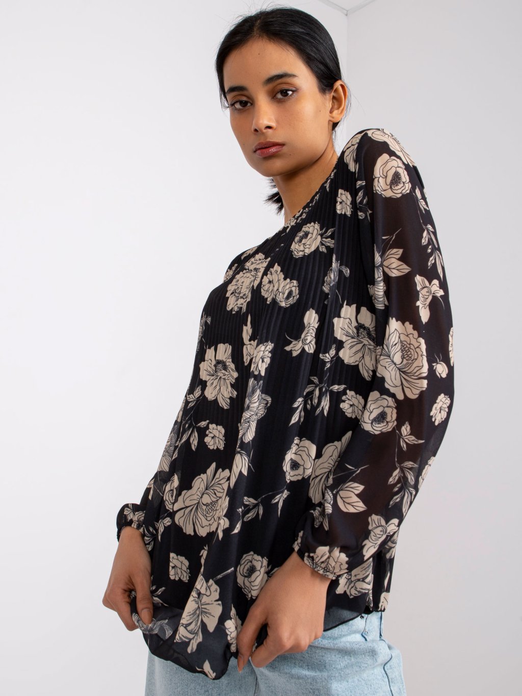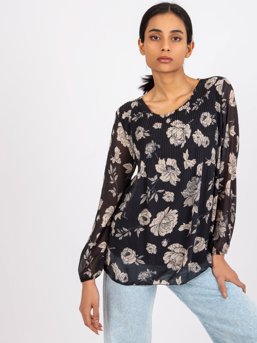 ČERNO-BÉŽOVÁ KVĚTINOVÁ PLISOVANÁ HALENKA LIANA